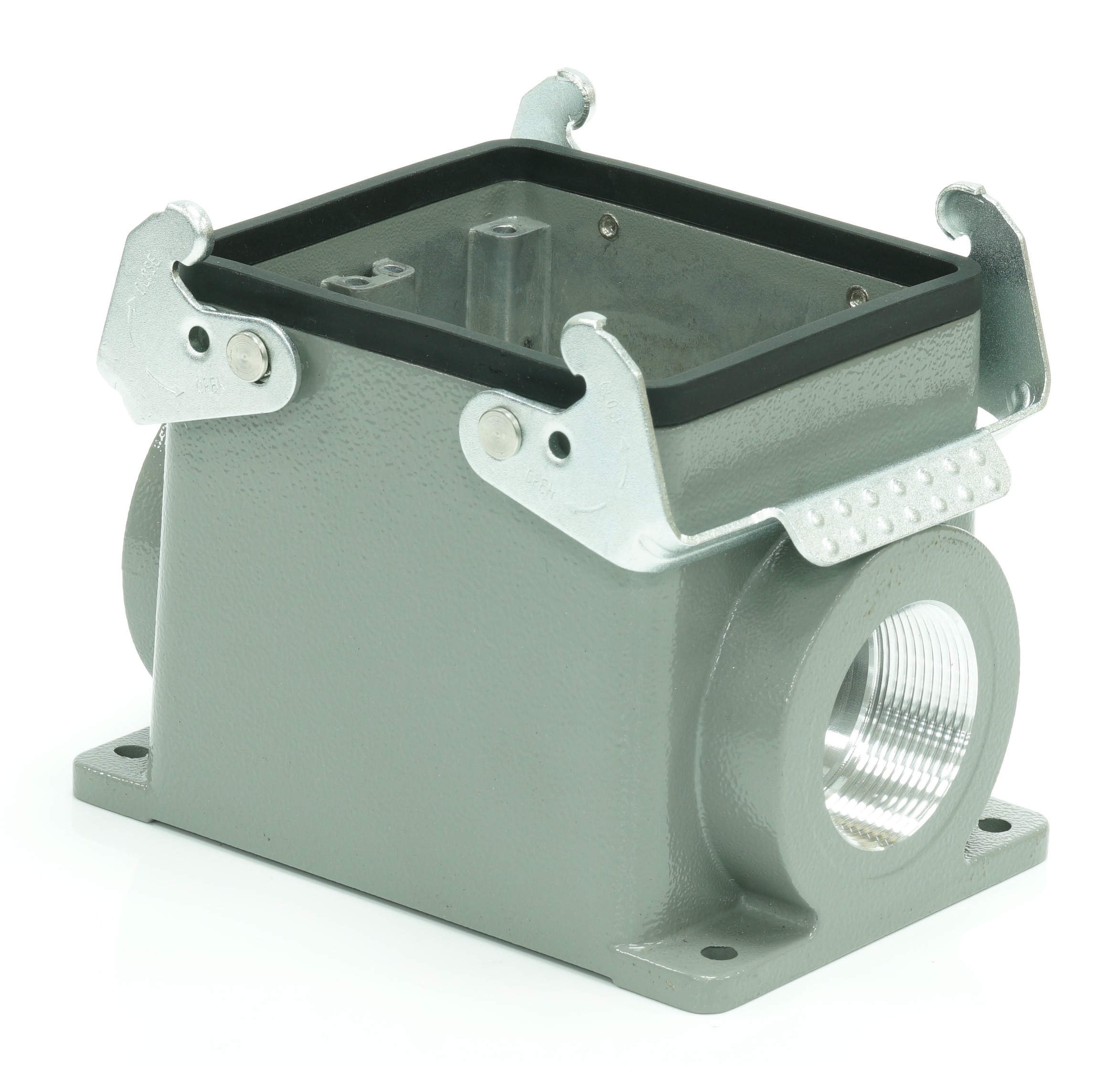 This is Side Entry Heavy Duty Power Connector Housing Surface Mount manufactured by RS PRO. The manufacturer part number is 208-4187. Its cable entry is from side angle . The product is available in surface mount configuration. It is IP rated with ip65. The product rs-h32b, is a highly preferred choice for users. It has side entry body orientation. It has a typical thread size of pg29. The product is highly suitable for rs pro heavy duty inserts and pg or m style cable glands. It includes 2 levers . It comes in connector housing configuration.