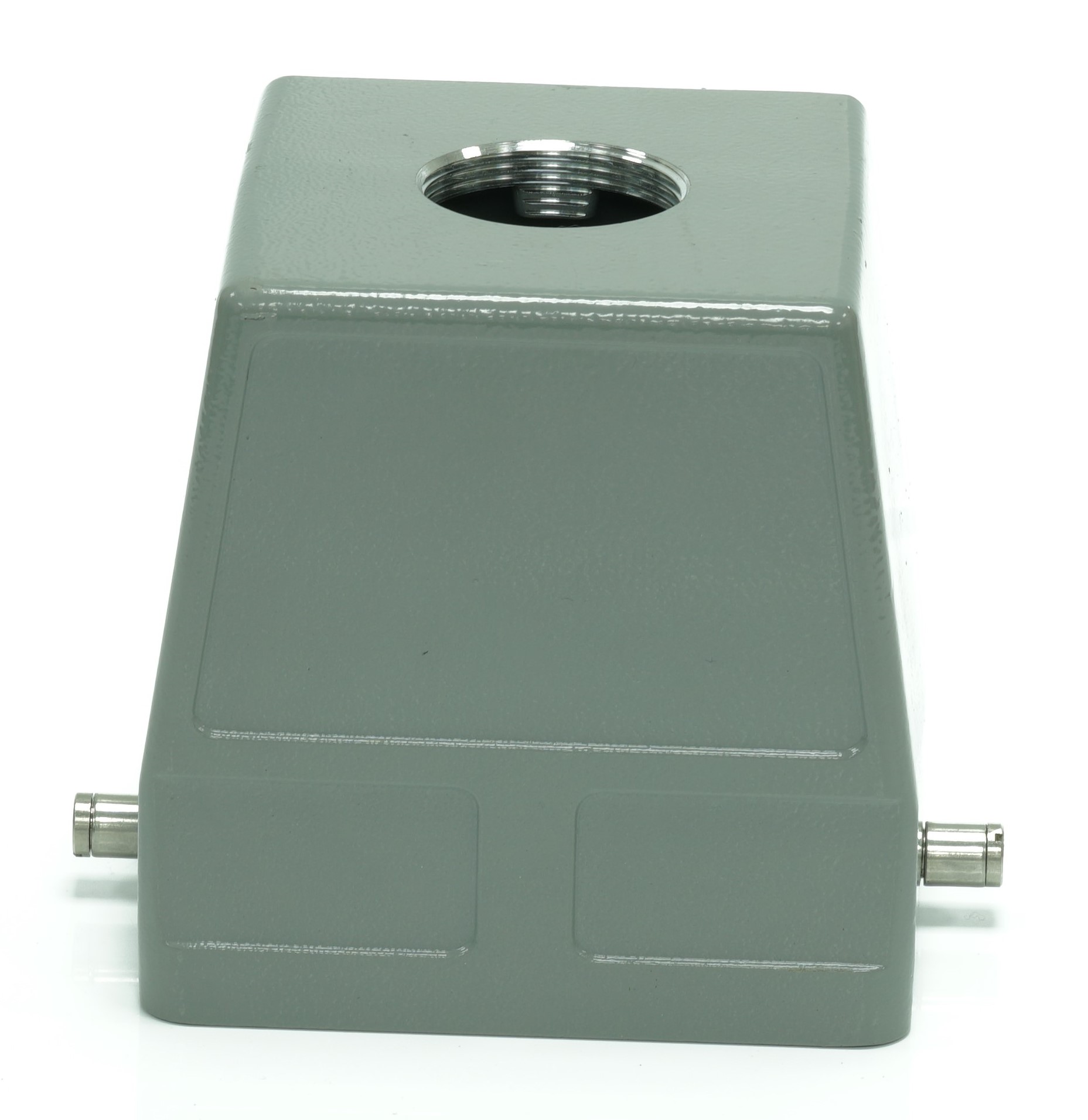 This is Top Entry Heavy Duty Power Connector Housing Top Mount manufactured by RS PRO. The manufacturer part number is 208-4196. Its cable entry is from top angle . The product is available in top mount configuration. It is IP rated with ip65. The product rs-h32b, is a highly preferred choice for users. It has top entry body orientation. It has a typical thread size of m32. The product is highly suitable for rs pro heavy duty inserts and pg or m style cable glands. It includes 2 levers . It comes in connector hood configuration.