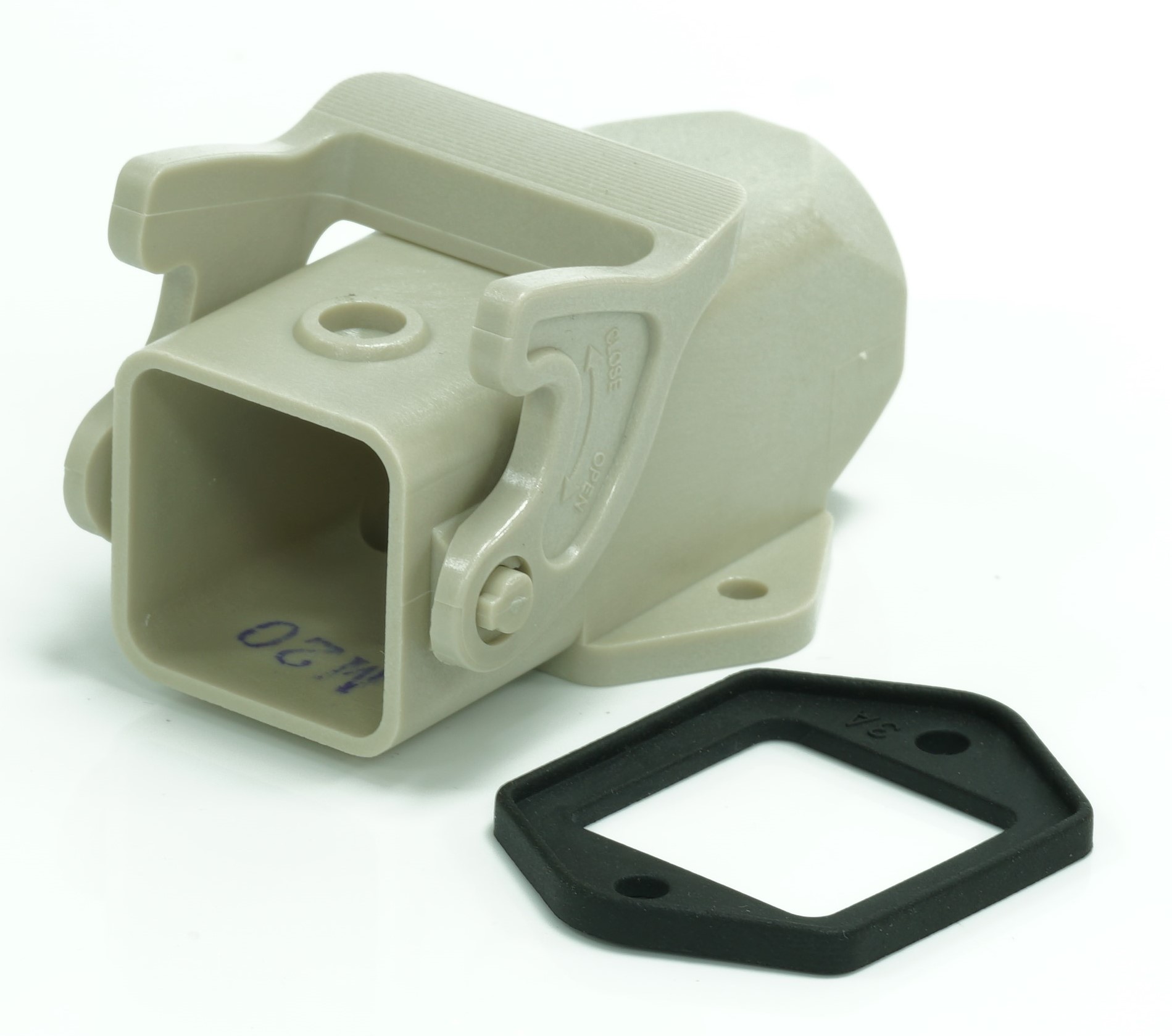 This is Heavy Duty Power Connector Housing Surface Mount manufactured by RS PRO. The manufacturer part number is 208-4215. Its cable entry is from top angle . The product is available in surface mount configuration. It is IP rated with ip65. The product rs-h3a.p, is a highly preferred choice for users. It has straight body orientation. It has a typical thread size of m20. Whereas, the rs-h3a.p is the manufacture's size code. The product is highly suitable for rs pro heavy duty inserts and pg or m style cable glands. It includes 1 levers . It comes in connector housing configuration.
