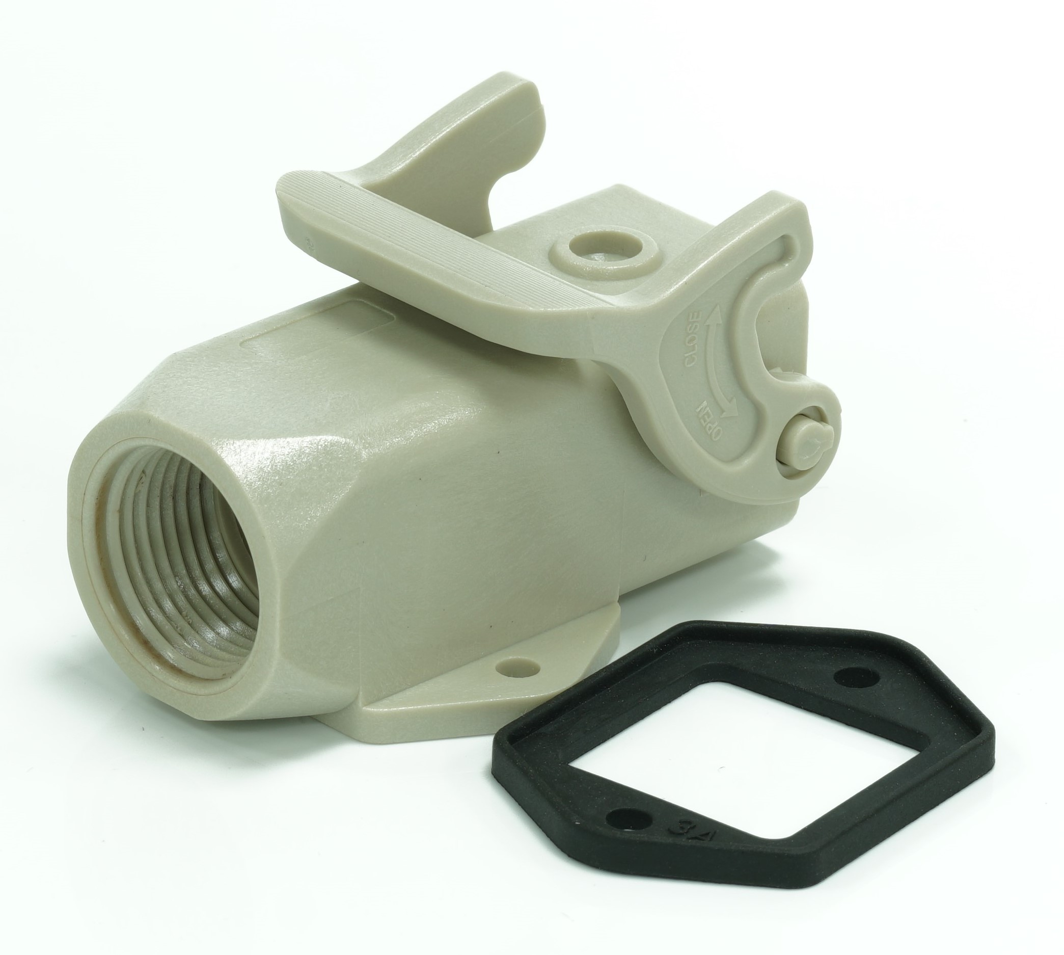 This is Heavy Duty Power Connector Housing Surface Mount manufactured by RS PRO. The manufacturer part number is 208-4216. Its cable entry is from top angle . The product is available in surface mount configuration. It is IP rated with ip65. The product rs-h3a.p, is a highly preferred choice for users. It has straight body orientation. It has a typical thread size of pg11. Whereas, the rs-h3a.p is the manufacture's size code. The product is highly suitable for rs pro heavy duty inserts and pg or m style cable glands. It includes 1 levers . It comes in connector housing configuration.