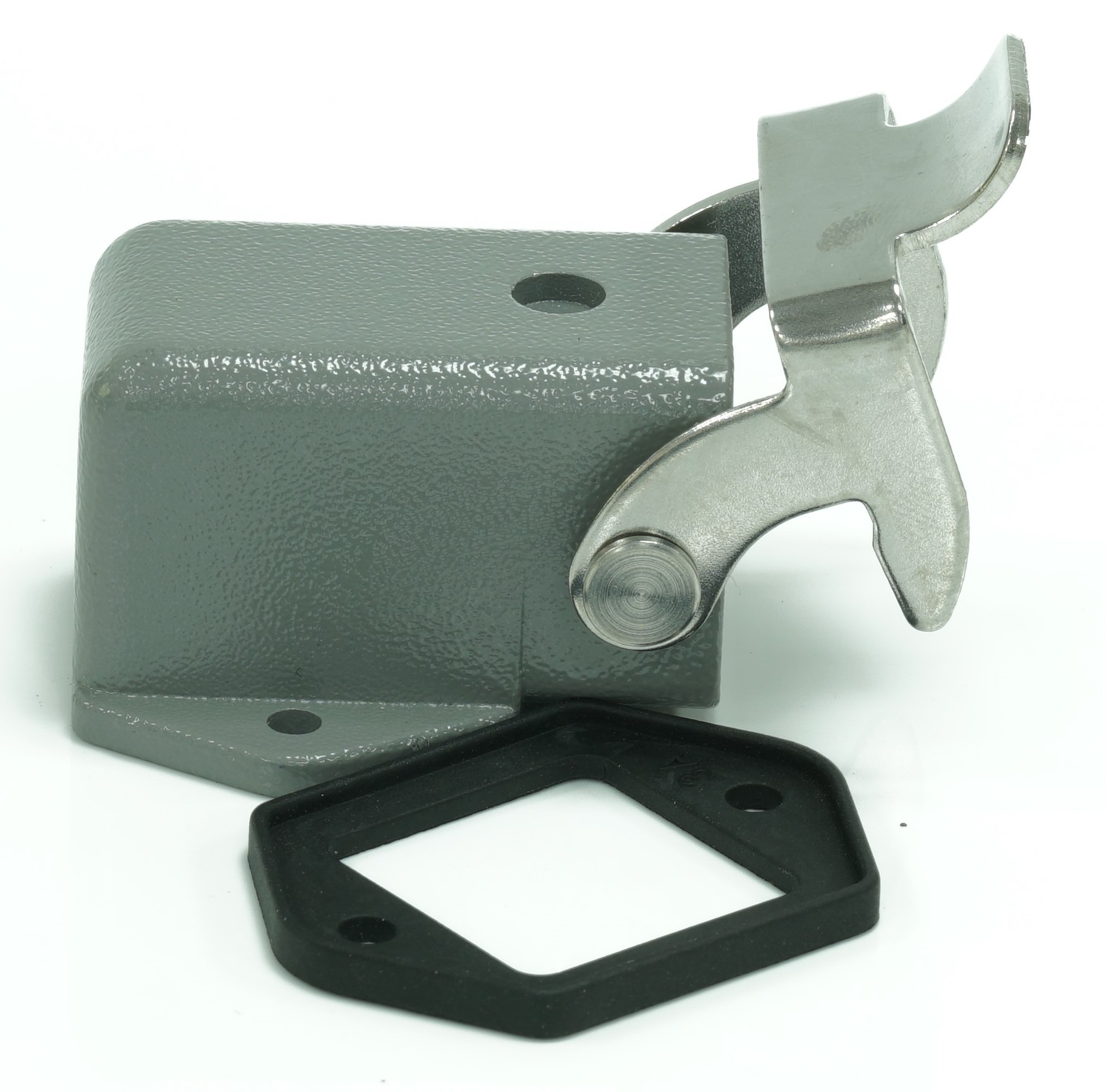 This is Heavy Duty Power Connector Housing Bulkhead manufactured by RS PRO. The manufacturer part number is 208-4223. Its cable entry is from bottom angle . The product is available in bulkhead configuration. It is IP rated with ip65. The product rs-h3a, is a highly preferred choice for users. It has right handle body orientation. Whereas, the rs-h3a is the manufacture's size code. The product is highly suitable for rs pro heavy duty inserts and pg or m style cable glands. It includes 1 levers . It comes in bulkhead housing configuration.