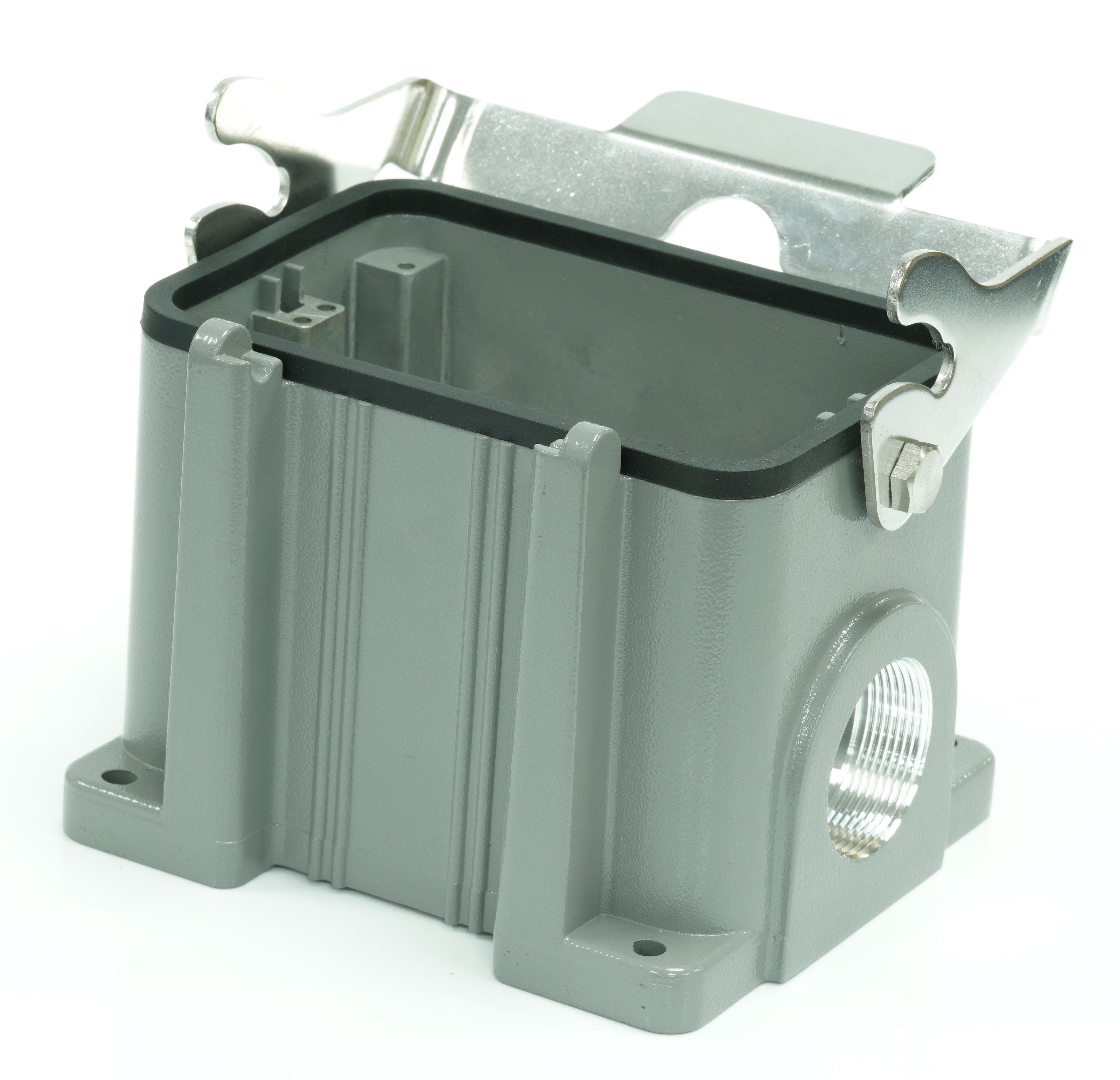 This is Side Entry Heavy Duty Power Connector Housing Surface Mount manufactured by RS PRO. The manufacturer part number is 208-4247. Its cable entry is from side angle . The product is available in surface mount configuration. It is IP rated with ip65. The product rs-h48b, is a highly preferred choice for users. It has side entry body orientation. It has a typical thread size of pg29. The product is highly suitable for rs pro heavy duty inserts and pg or m style cable glands. It includes 1 levers . It comes in connector housing configuration.