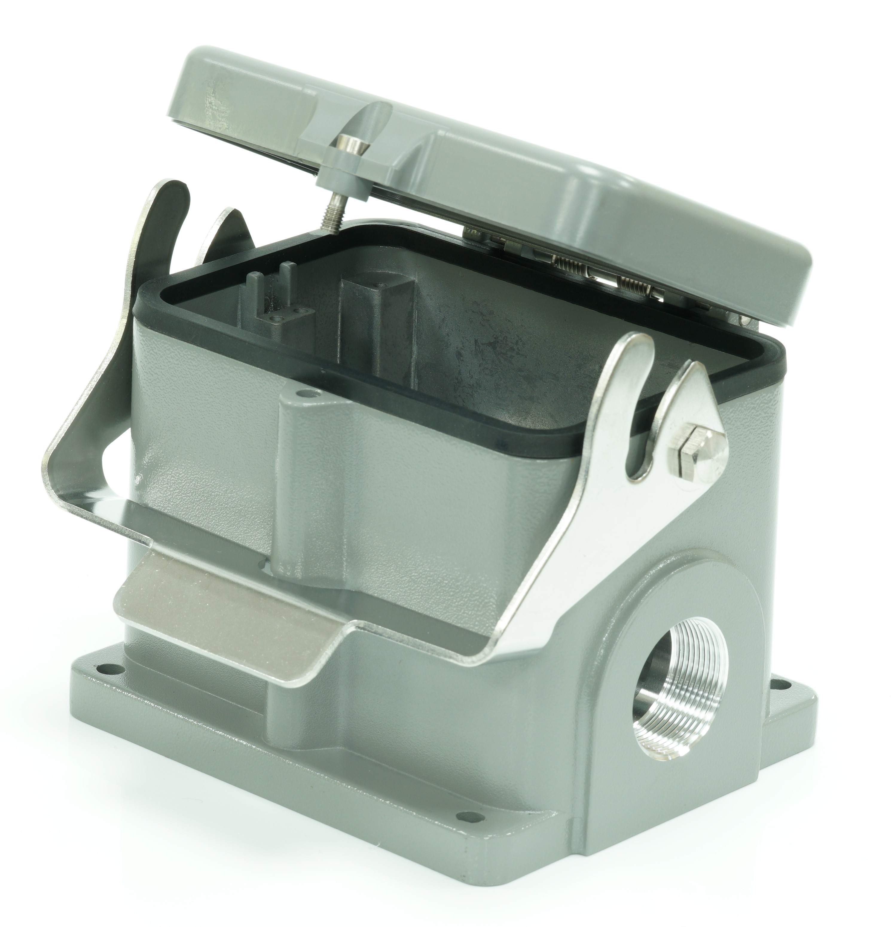 This is Side Entry Heavy Duty Power Connector Housing Surface Mount manufactured by RS PRO. The manufacturer part number is 208-4249. Its cable entry is from side angle . The product is available in surface mount configuration. It is IP rated with ip65. The product rs-h48b, is a highly preferred choice for users. It has side entry body orientation. It has a typical thread size of m32. Whereas, the rs-h48b is the manufacture's size code. The product is highly suitable for rs pro heavy duty inserts and pg or m style cable glands. It includes 1 levers . It comes in connector housing configuration.
