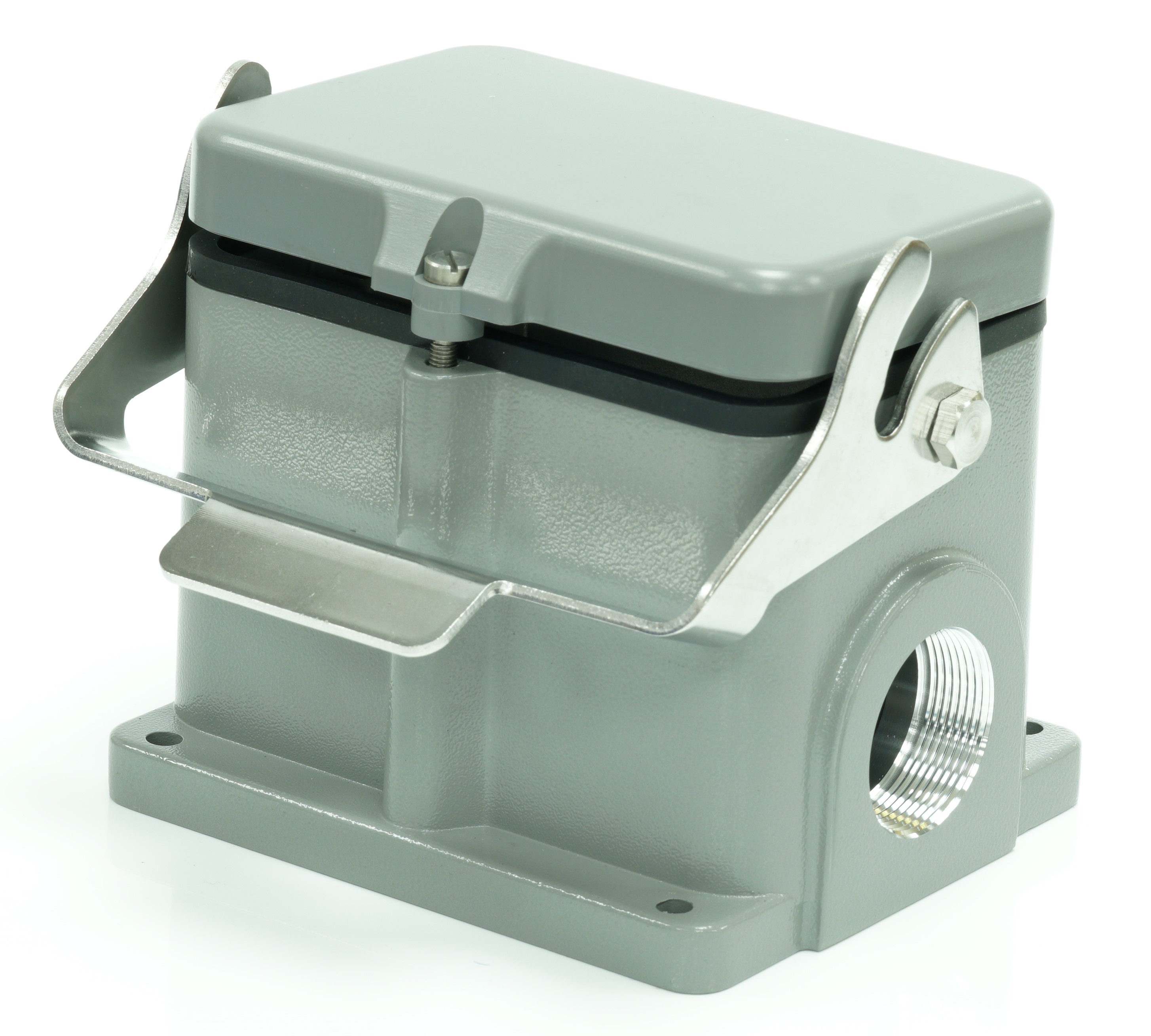 This is Side Entry Heavy Duty Power Connector Housing Surface Mount manufactured by RS PRO. The manufacturer part number is 208-4251. Its cable entry is from side angle . The product is available in surface mount configuration. It is IP rated with ip65. The product rs-h48b, is a highly preferred choice for users. It has side entry body orientation. It has a typical thread size of pg29. Whereas, the rs-h48b is the manufacture's size code. The product is highly suitable for rs pro heavy duty inserts and pg or m style cable glands. It includes 1 levers . It comes in connector housing configuration.