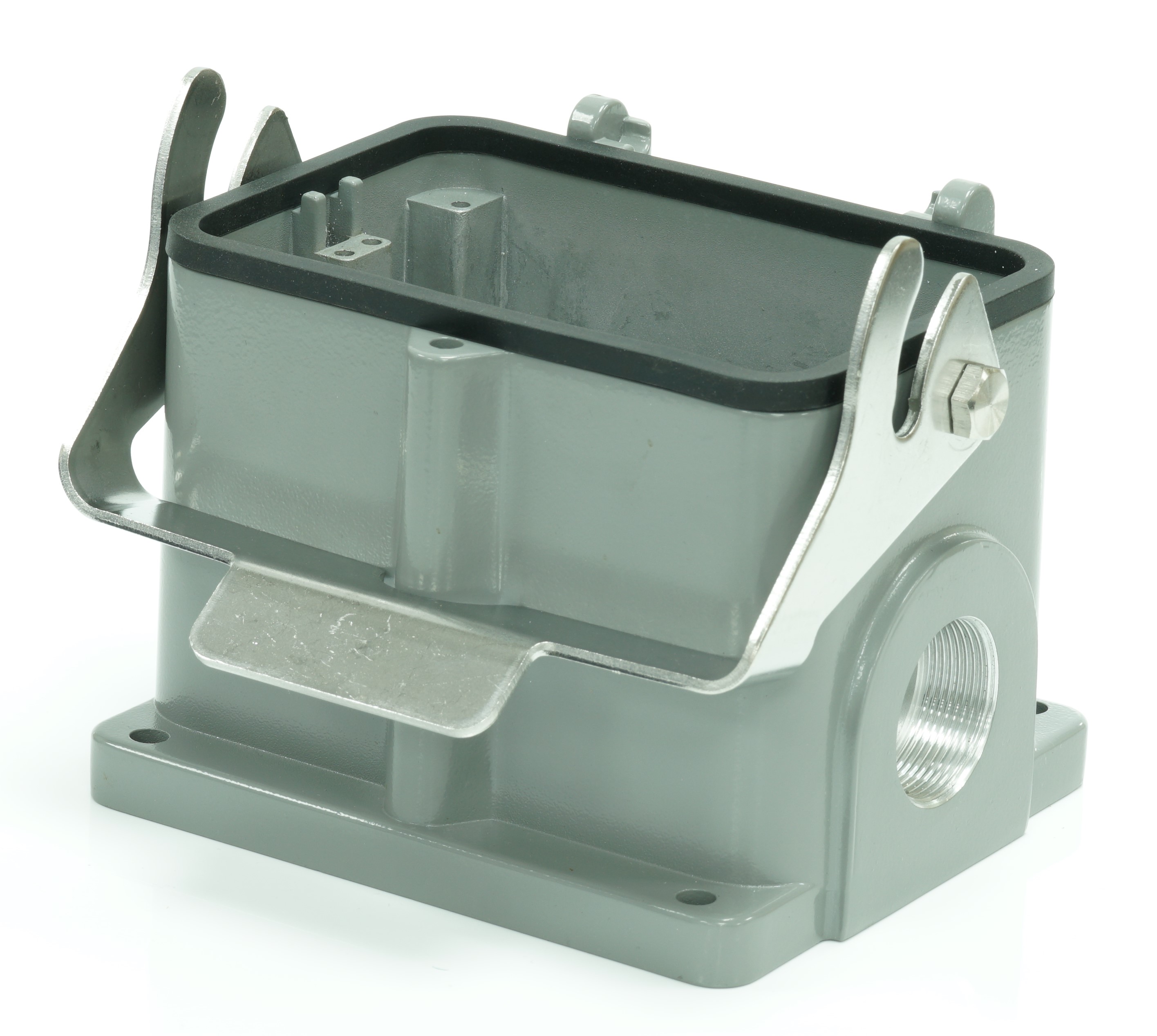 This is Side Entry Heavy Duty Power Connector Housing Surface Mount manufactured by RS PRO. The manufacturer part number is 208-4258. Its cable entry is from side angle . The product is available in surface mount configuration. It is IP rated with ip65. The product rs-h48b, is a highly preferred choice for users. It has side entry body orientation. It has a typical thread size of m32. The product is highly suitable for rs pro heavy duty inserts and pg or m style cable glands. It includes 1 levers . It comes in connector housing configuration.