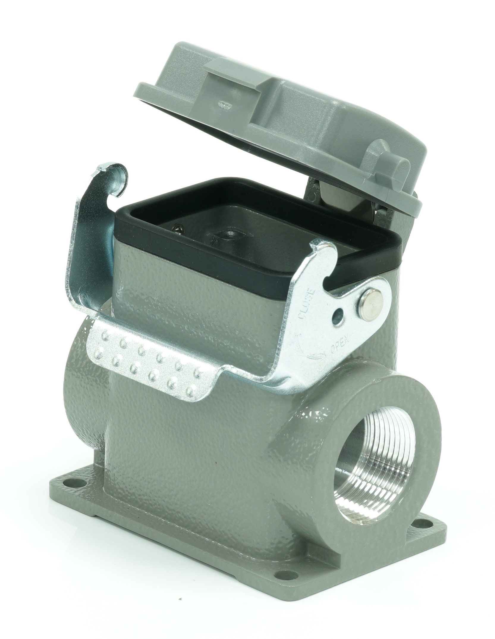 This is Side Entry Heavy Duty Power Connector Housing Surface Mount manufactured by RS PRO. The manufacturer part number is 208-4305. Its cable entry is from side angle . The product is available in surface mount configuration. It is IP rated with ip65. The product rs-h6b, is a highly preferred choice for users. It has side entry body orientation. It has a typical thread size of pg21. The product is highly suitable for rs pro heavy duty inserts and pg or m style cable glands. It includes 1 levers . It comes in connector housing configuration.