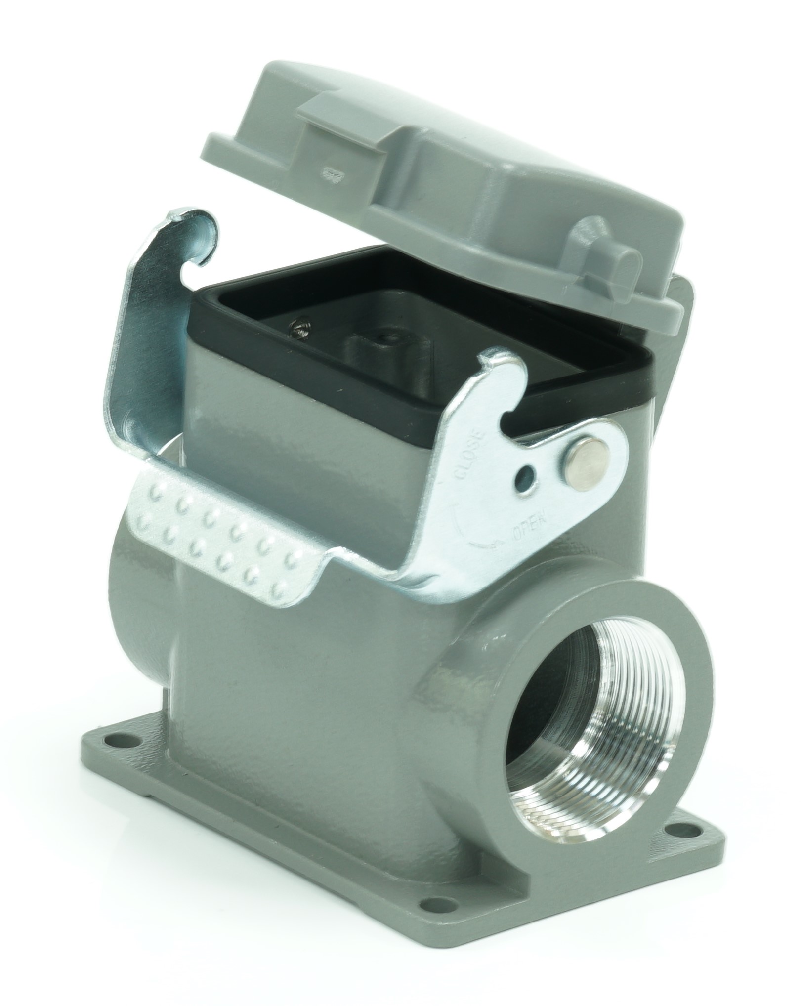 This is Side Entry Heavy Duty Power Connector Housing Surface Mount manufactured by RS PRO. The manufacturer part number is 208-4308. Its cable entry is from side angle . The product is available in surface mount configuration. It is IP rated with ip65. The product rs-h6b, is a highly preferred choice for users. It has side entry body orientation. It has a typical thread size of m32. The product is highly suitable for rs pro heavy duty inserts and pg or m style cable glands. It includes 1 levers . It comes in connector housing configuration.