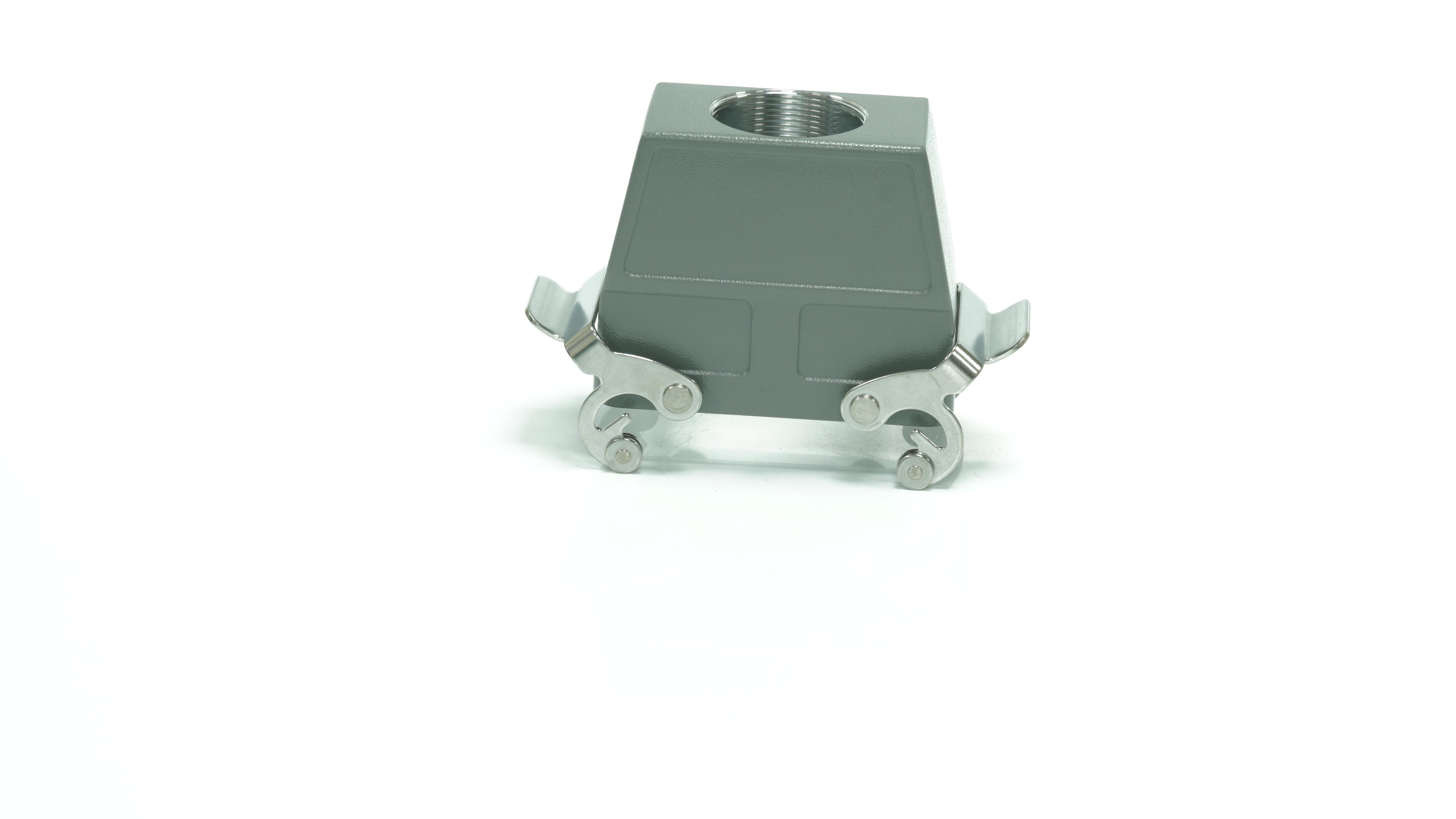 This is Top Entry Heavy Duty Power Connector Housing Top Mount manufactured by RS PRO. The manufacturer part number is 208-3950. Its cable entry is from top angle . The product is available in top mount configuration. It is IP rated with ip65. The product rs-h16b, is a highly preferred choice for users. It has top entry body orientation. It has a typical thread size of m32. The product is highly suitable for rs pro heavy duty inserts and pg or m style cable glands. It includes 2 levers . It comes in connector hood configuration.