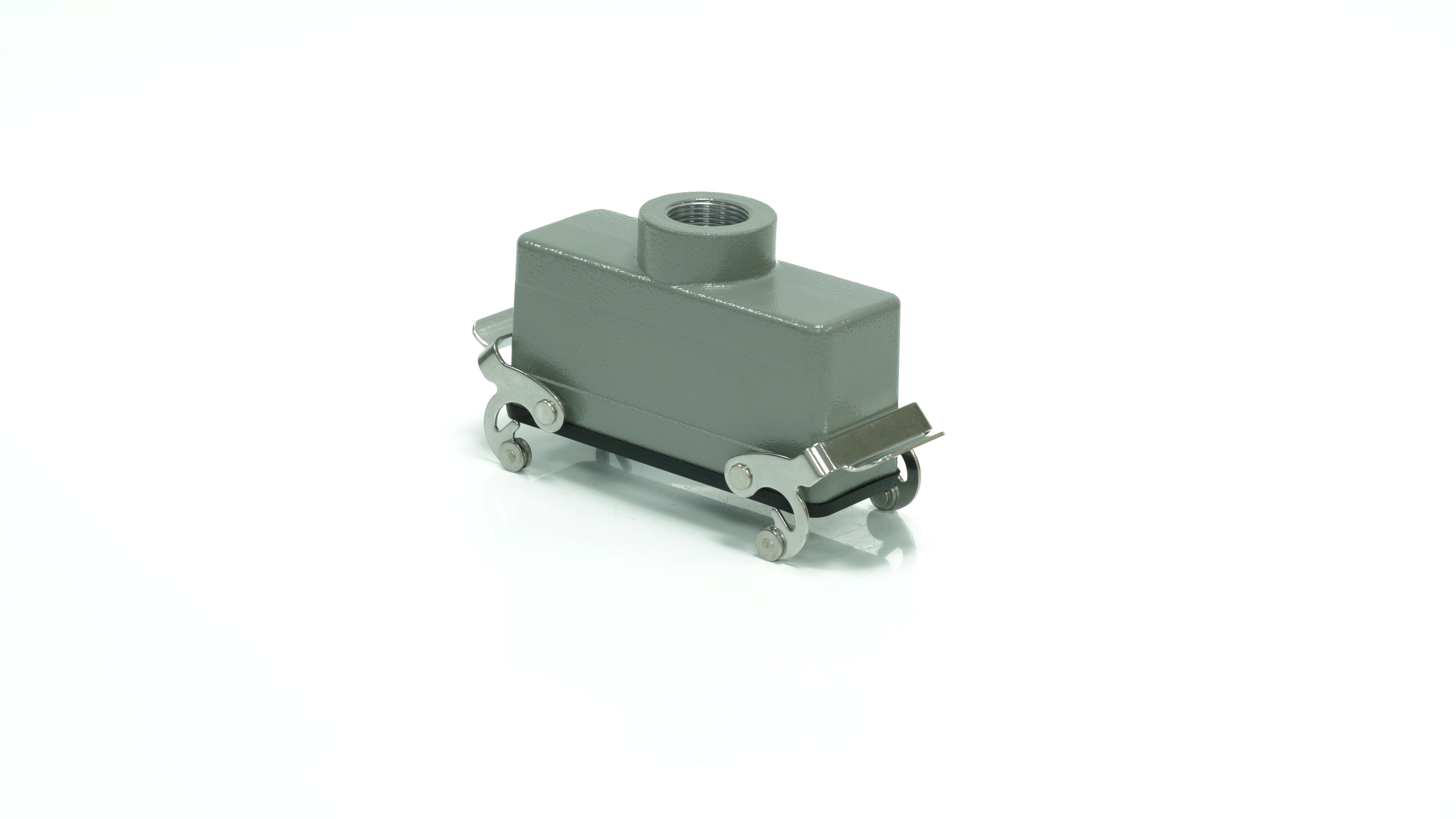This is Top Entry Heavy Duty Power Connector Housing Cable manufactured by RS PRO. The manufacturer part number is 208-3968. Its cable entry is from top angle . The product is available in cable configuration. It is IP rated with ip65. The product rs-h24b, is a highly preferred choice for users. It has top entry body orientation. It has a typical thread size of m25. Whereas, the rs-h24b is the manufacture's size code. The product is highly suitable for rs pro heavy duty inserts and pg or m style cable glands. It includes 2 levers . It comes in cable to cable housing configuration.