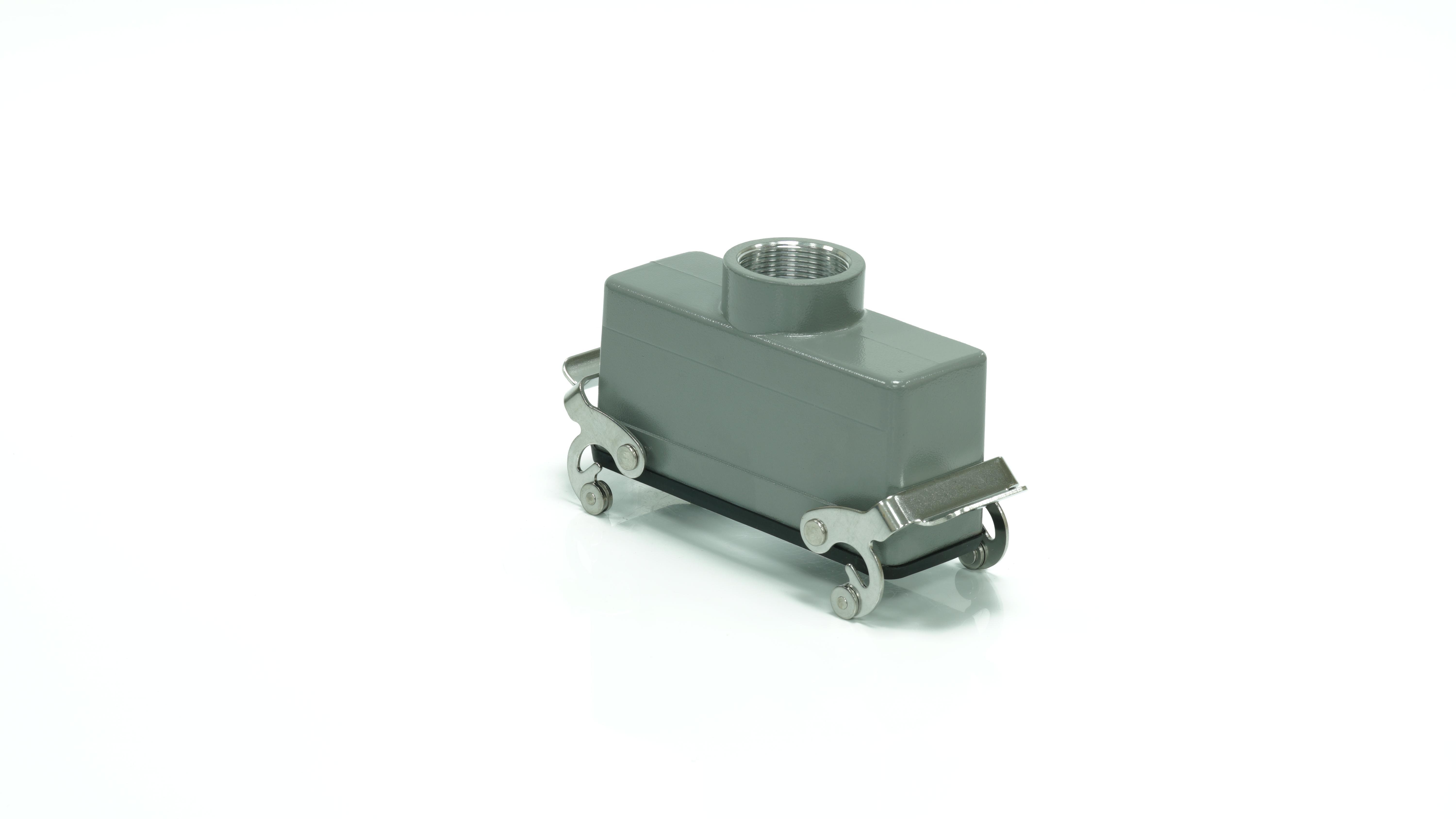 This is Top Entry Heavy Duty Power Connector Housing Cable manufactured by RS PRO. The manufacturer part number is 208-3969. Its cable entry is from top angle . The product is available in cable configuration. It is IP rated with ip65. The product rs-h24b, is a highly preferred choice for users. It has top entry body orientation. It has a typical thread size of m32. Whereas, the rs-h24b is the manufacture's size code. The product is highly suitable for rs pro heavy duty inserts and pg or m style cable glands. It includes 2 levers . It comes in cable to cable housing configuration.