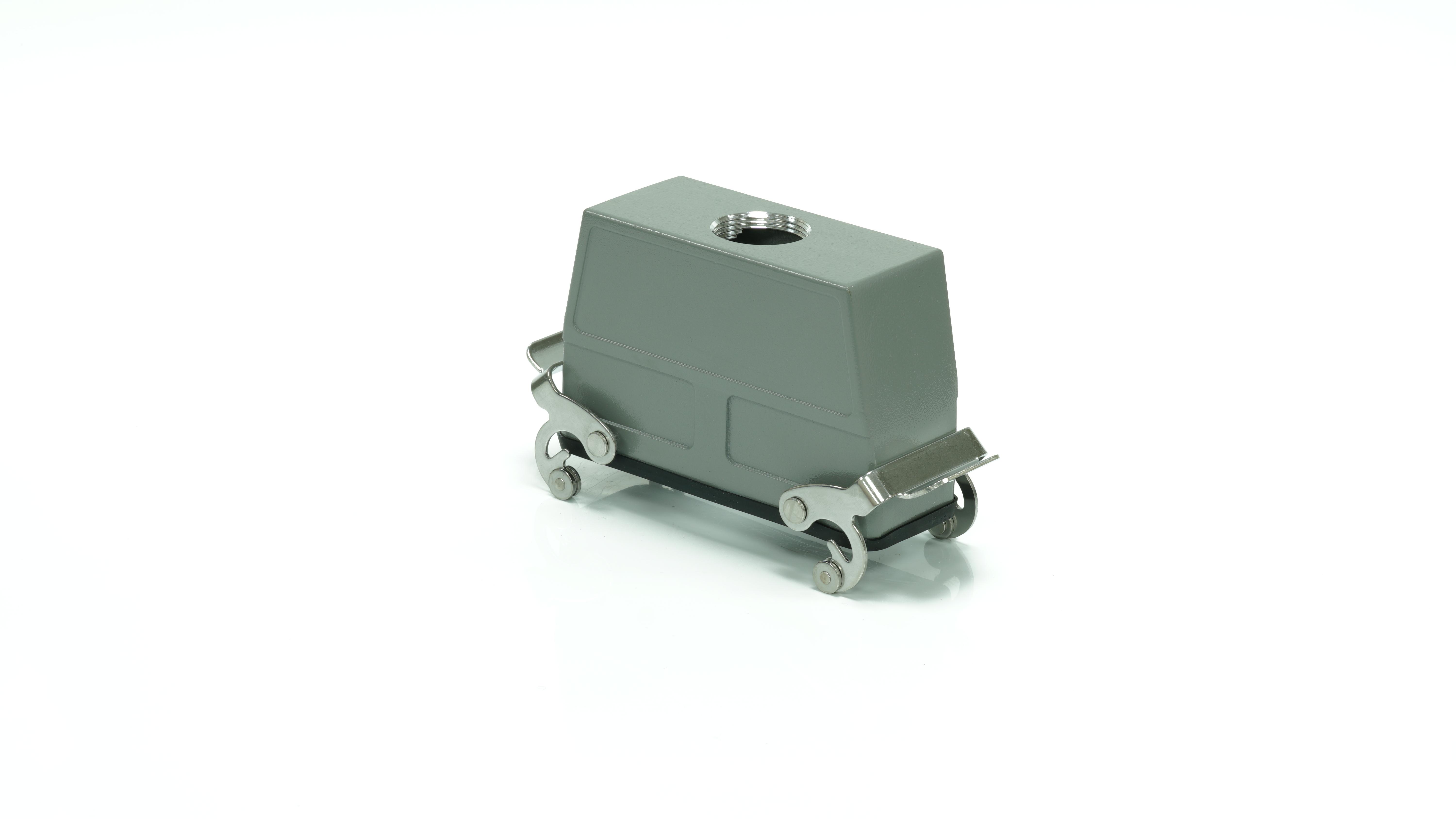 This is Top Entry Heavy Duty Power Connector Housing Cable manufactured by RS PRO. The manufacturer part number is 208-3979. Its cable entry is from top angle . The product is available in cable configuration. It is IP rated with ip65. The product rs-h24b, is a highly preferred choice for users. It has top entry body orientation. It has a typical thread size of pg21. The product is highly suitable for rs pro heavy duty inserts and pg or m style cable glands. It includes 2 levers . It comes in cable to cable housing configuration.