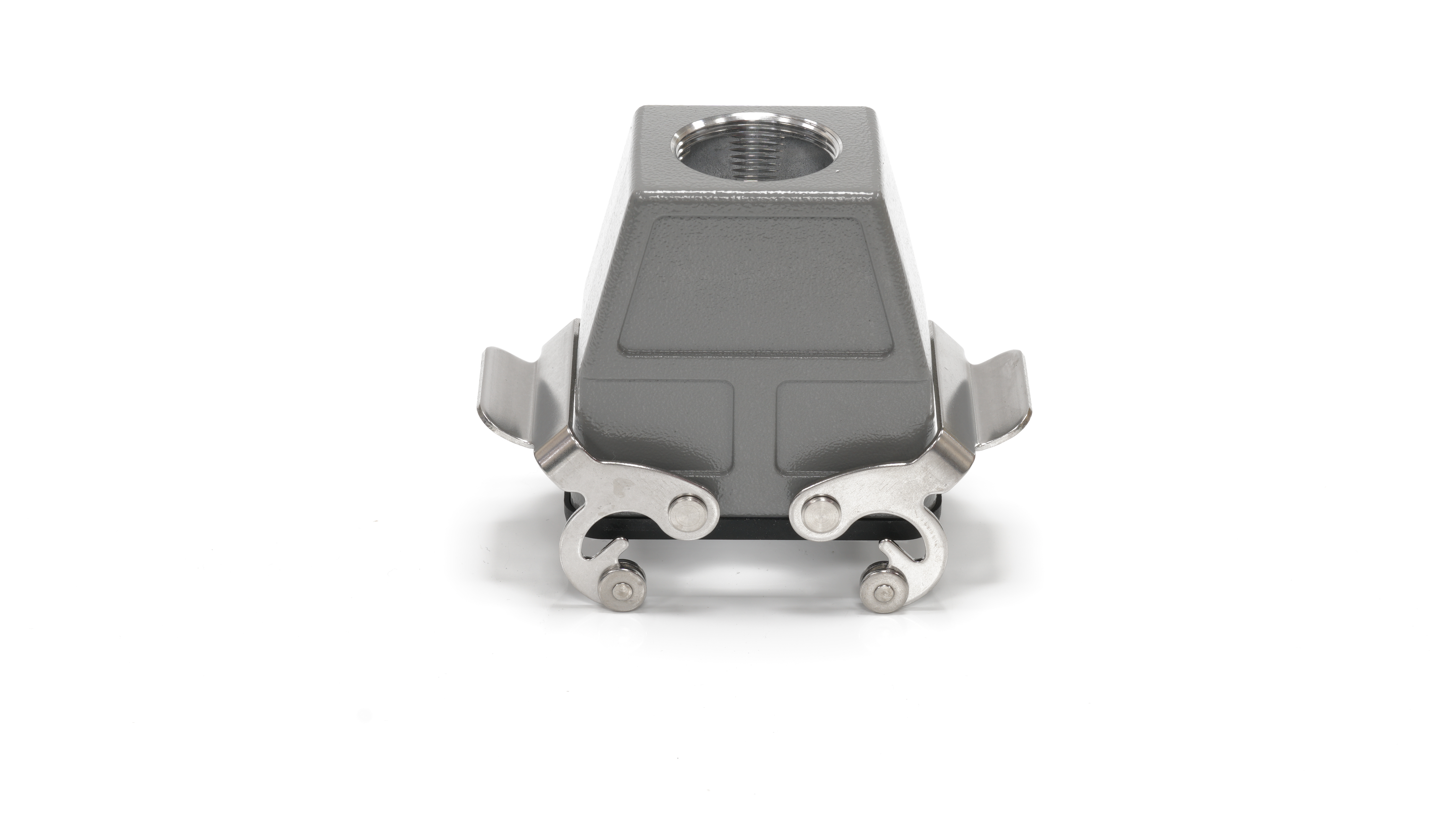 This is Top Entry Heavy Duty Power Connector Housing Cable manufactured by RS PRO. The manufacturer part number is 208-4761. Its cable entry is from top angle . The product is available in cable configuration. It is IP rated with ip65. The product rs-h10b, is a highly preferred choice for users. It has top entry body orientation. It has a typical thread size of m32. Whereas, the rs-h10b is the manufacture's size code. The product is highly suitable for rs pro heavy duty inserts and pg or m style cable glands. It includes 2 levers . It comes in cable to cable hood configuration.