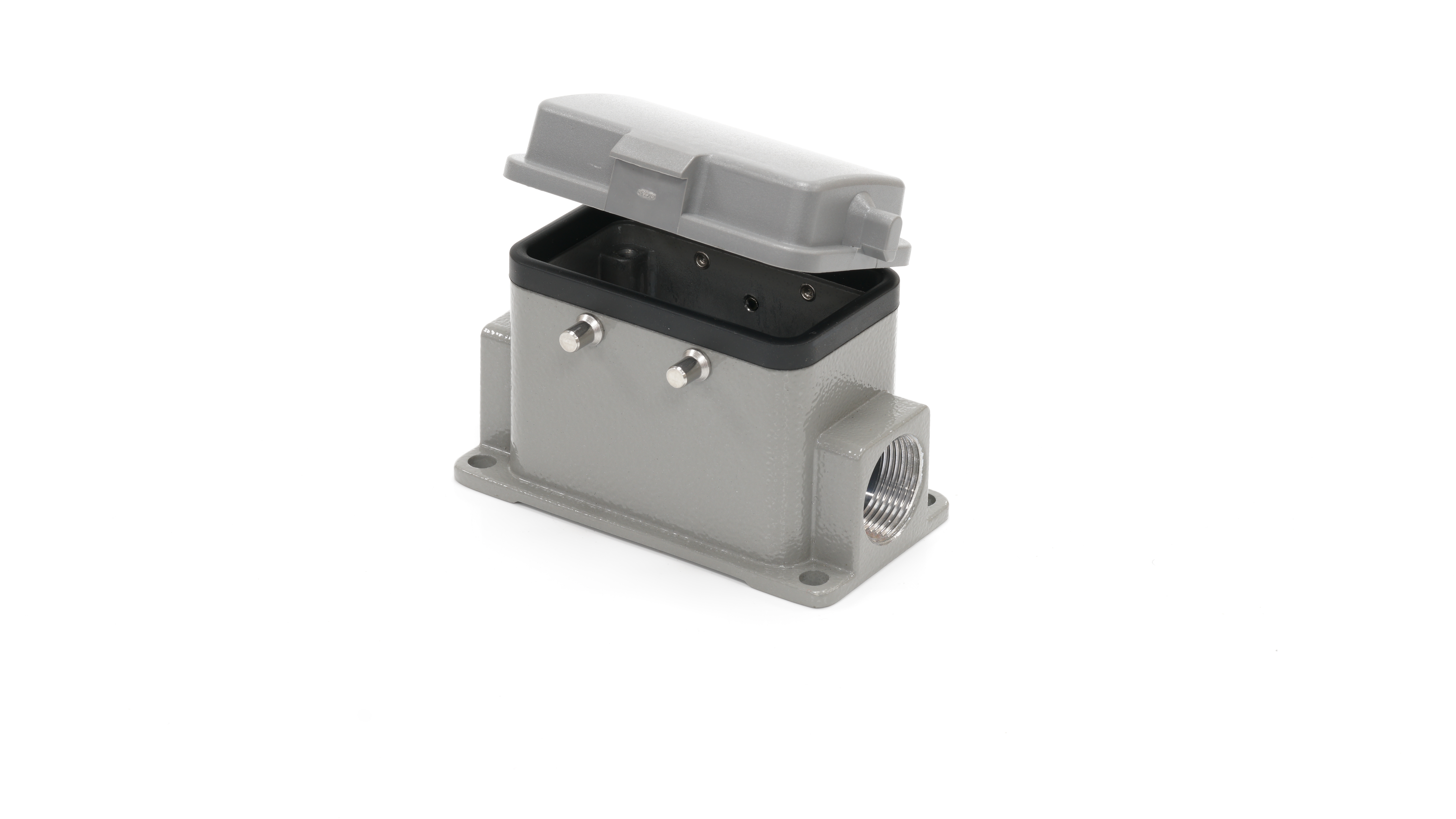 This is Side Entry Heavy Duty Power Connector Housing Surface Mount manufactured by RS PRO. The manufacturer part number is 208-4811. Its cable entry is from side angle . The product is available in surface mount configuration. It is IP rated with ip65. The product h10b, is a highly preferred choice for users. It has side entry body orientation. It has a typical thread size of pg16 x 2. The product is highly suitable for rs pro heavy duty inserts and pg or m style cable glands. It includes 4 levers . It comes in connector housing configuration.