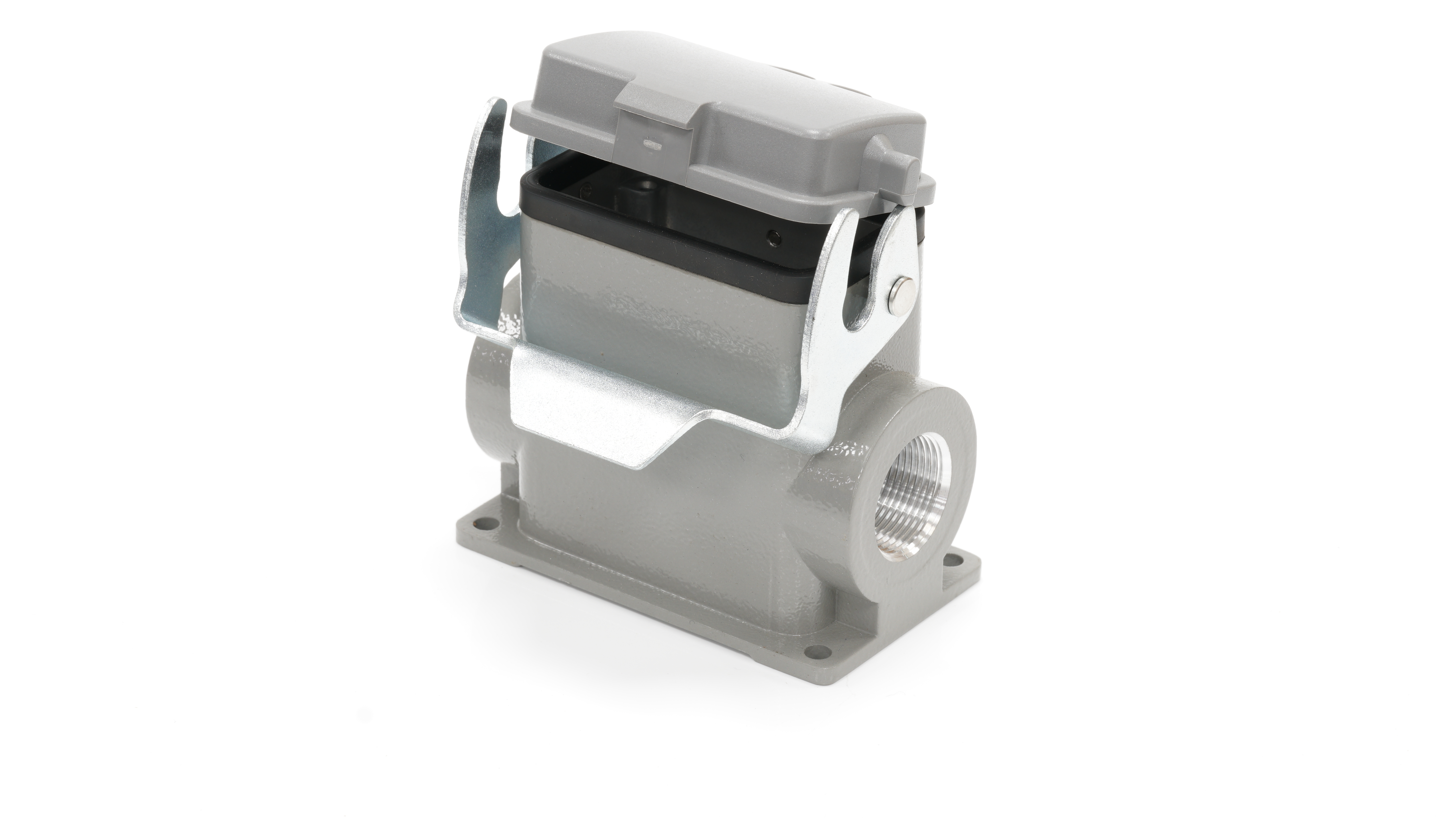 This is Side Entry Heavy Duty Power Connector Housing Surface Mount manufactured by RS PRO. The manufacturer part number is 208-4824. Its cable entry is from side angle . The product is available in surface mount configuration. It is IP rated with ip65. The product h10b, is a highly preferred choice for users. It has side entry body orientation. It has a typical thread size of m25 x 2. The product is highly suitable for rs pro heavy duty inserts and pg or m style cable glands. It includes 1 levers . It comes in connector housing configuration.