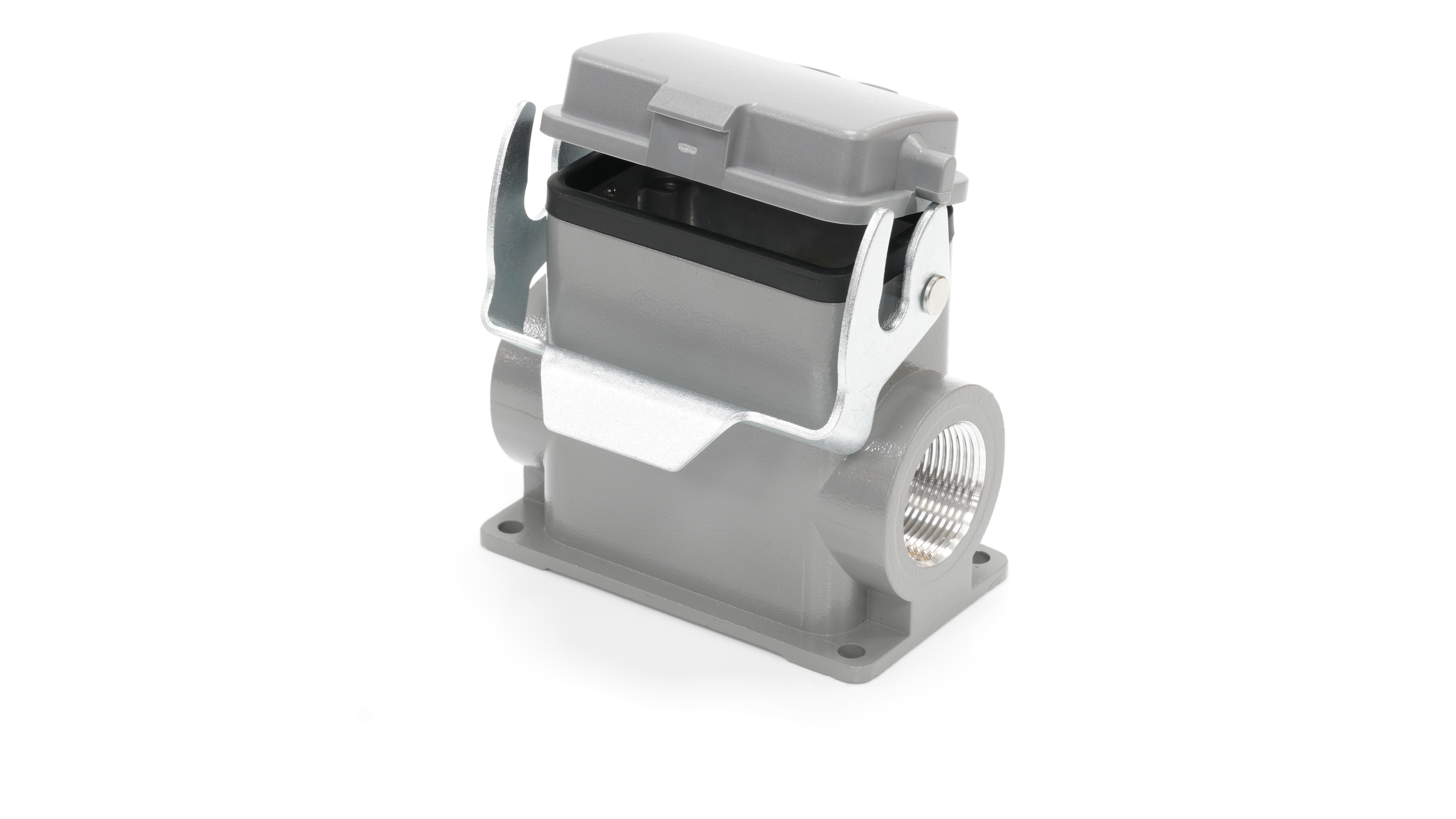 This is Side Entry Heavy Duty Power Connector Housing Surface Mount manufactured by RS PRO. The manufacturer part number is 208-4826. Its cable entry is from side angle . The product is available in surface mount configuration. It is IP rated with ip65. The product h10b, is a highly preferred choice for users. It has side entry body orientation. It has a typical thread size of pg21 x 2. The product is highly suitable for rs pro heavy duty inserts and pg or m style cable glands. It includes 1 levers . It comes in connector housing configuration.