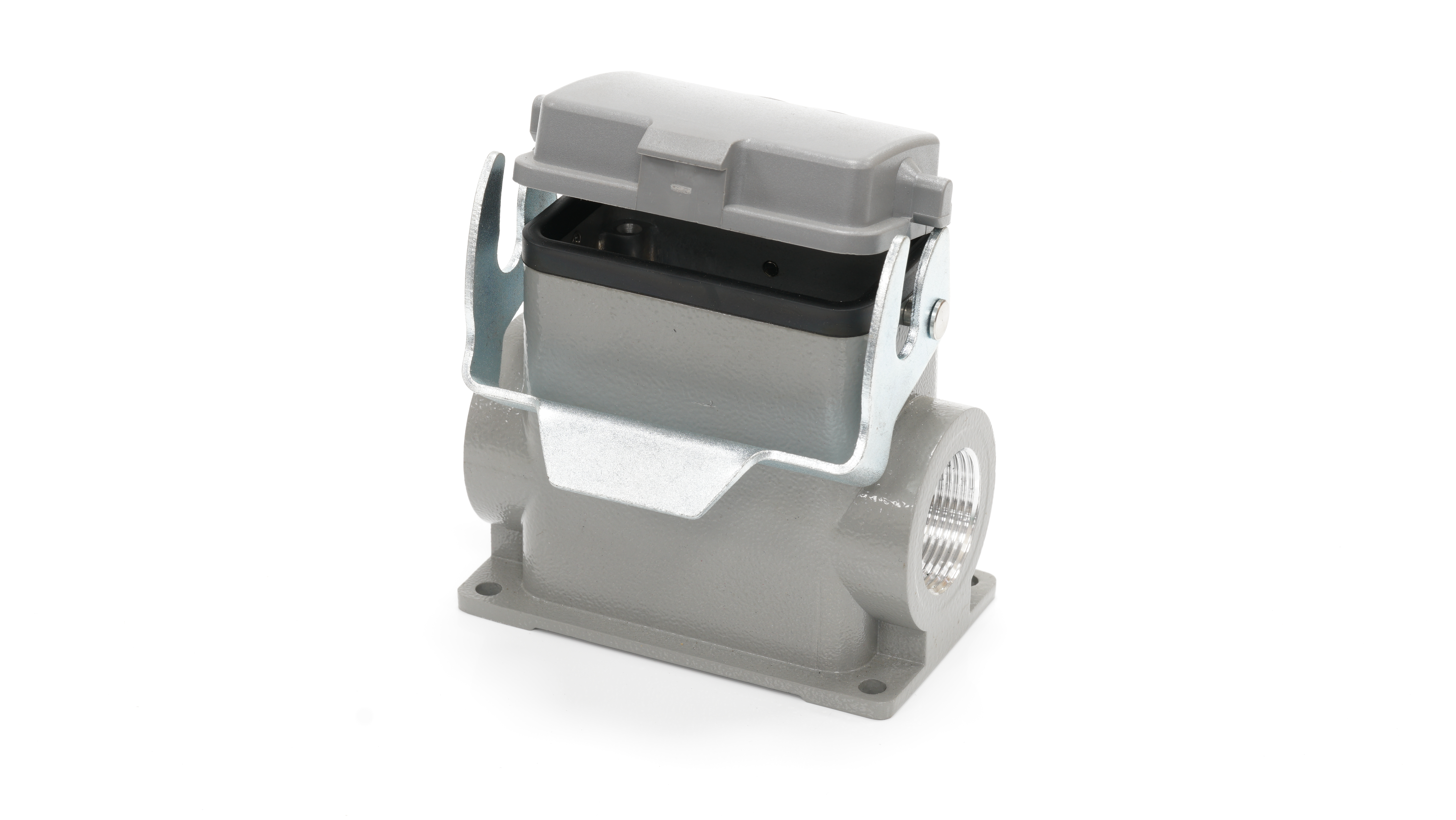 This is Side Entry Heavy Duty Power Connector Housing Surface Mount manufactured by RS PRO. The manufacturer part number is 208-4830. Its cable entry is from side angle . The product is available in surface mount configuration. It is IP rated with ip65. The product h10b, is a highly preferred choice for users. It has side entry body orientation. It has a typical thread size of pg21. The product is highly suitable for rs pro heavy duty inserts and pg or m style cable glands. It includes 1 levers . It comes in connector housing configuration.