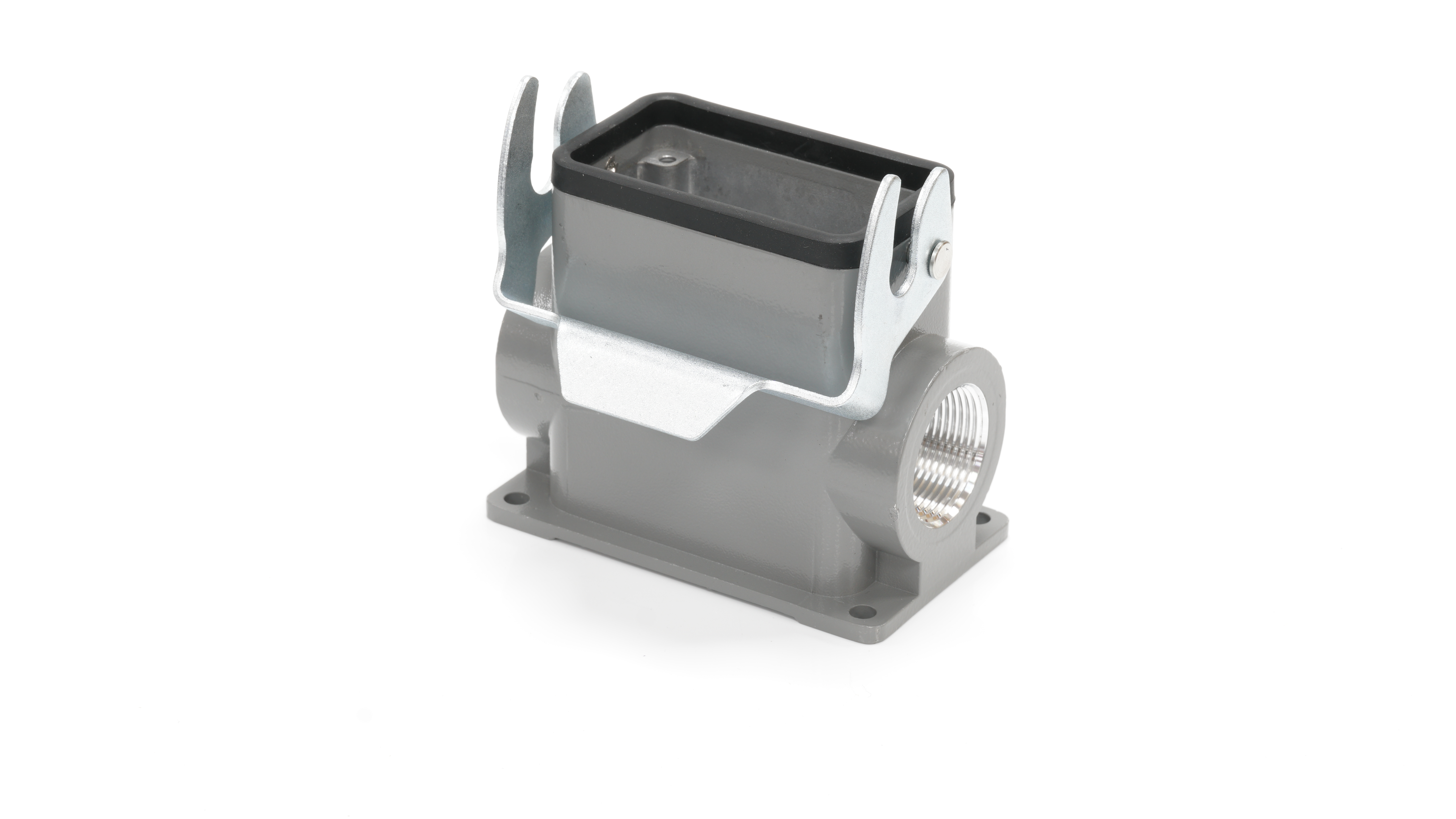 This is Side Entry Heavy Duty Power Connector Housing Surface Mount manufactured by RS PRO. The manufacturer part number is 208-4834. Its cable entry is from side angle . The product is available in surface mount configuration. It is IP rated with ip65. The product h10b, is a highly preferred choice for users. It has side entry body orientation. It has a typical thread size of pg21. The product is highly suitable for rs pro heavy duty inserts and pg or m style cable glands. It includes 1 levers . It comes in connector housing configuration.