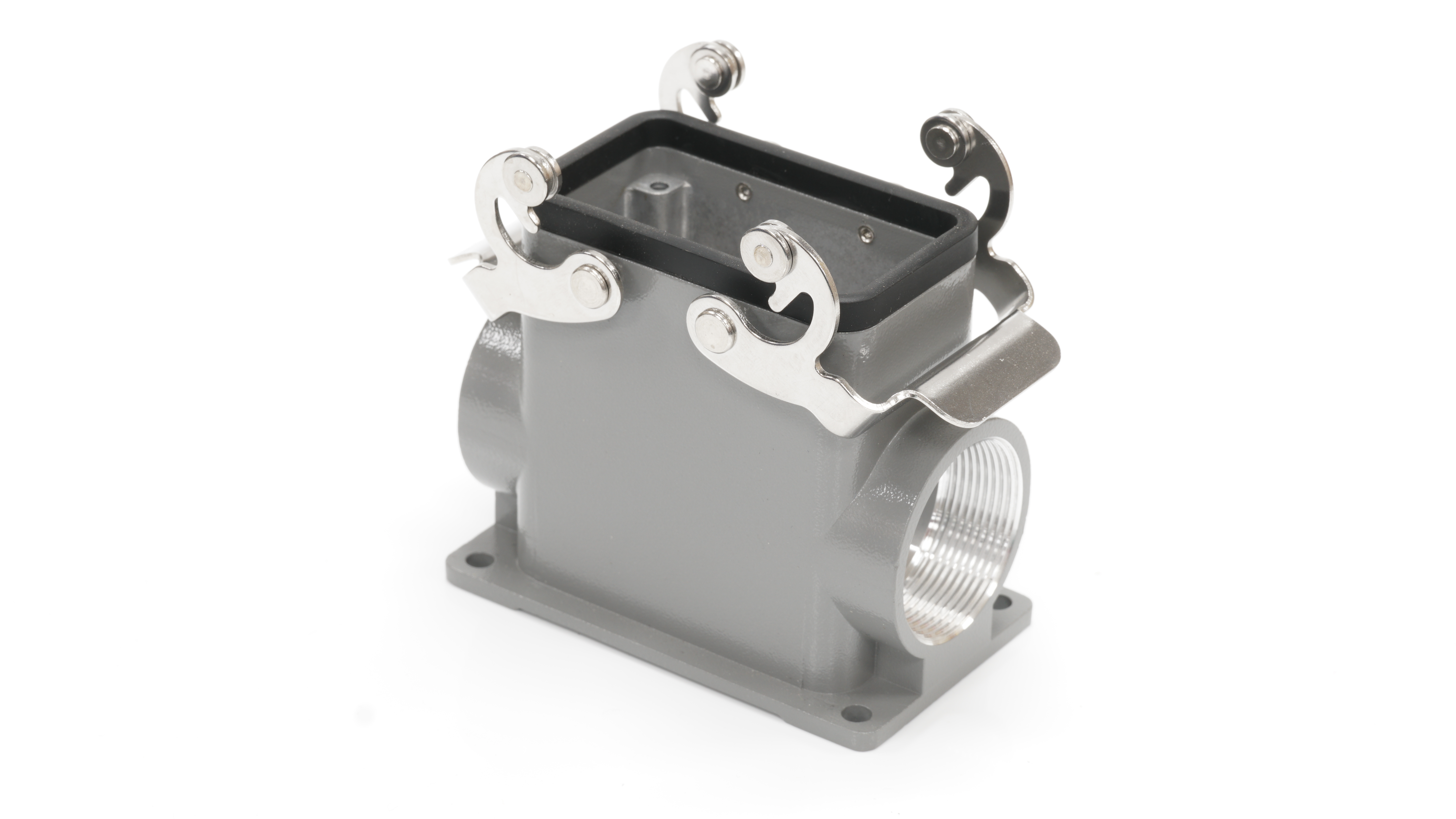 This is Side Entry Heavy Duty Power Connector Housing Surface Mount manufactured by RS PRO. The manufacturer part number is 208-4840. Its cable entry is from side angle . The product is available in surface mount configuration. It is IP rated with ip65. The product h10b, is a highly preferred choice for users. It has side entry body orientation. It has a typical thread size of pg29 x 2. The product is highly suitable for rs pro heavy duty inserts and pg or m style cable glands. It includes 2 levers . It comes in connector housing configuration.