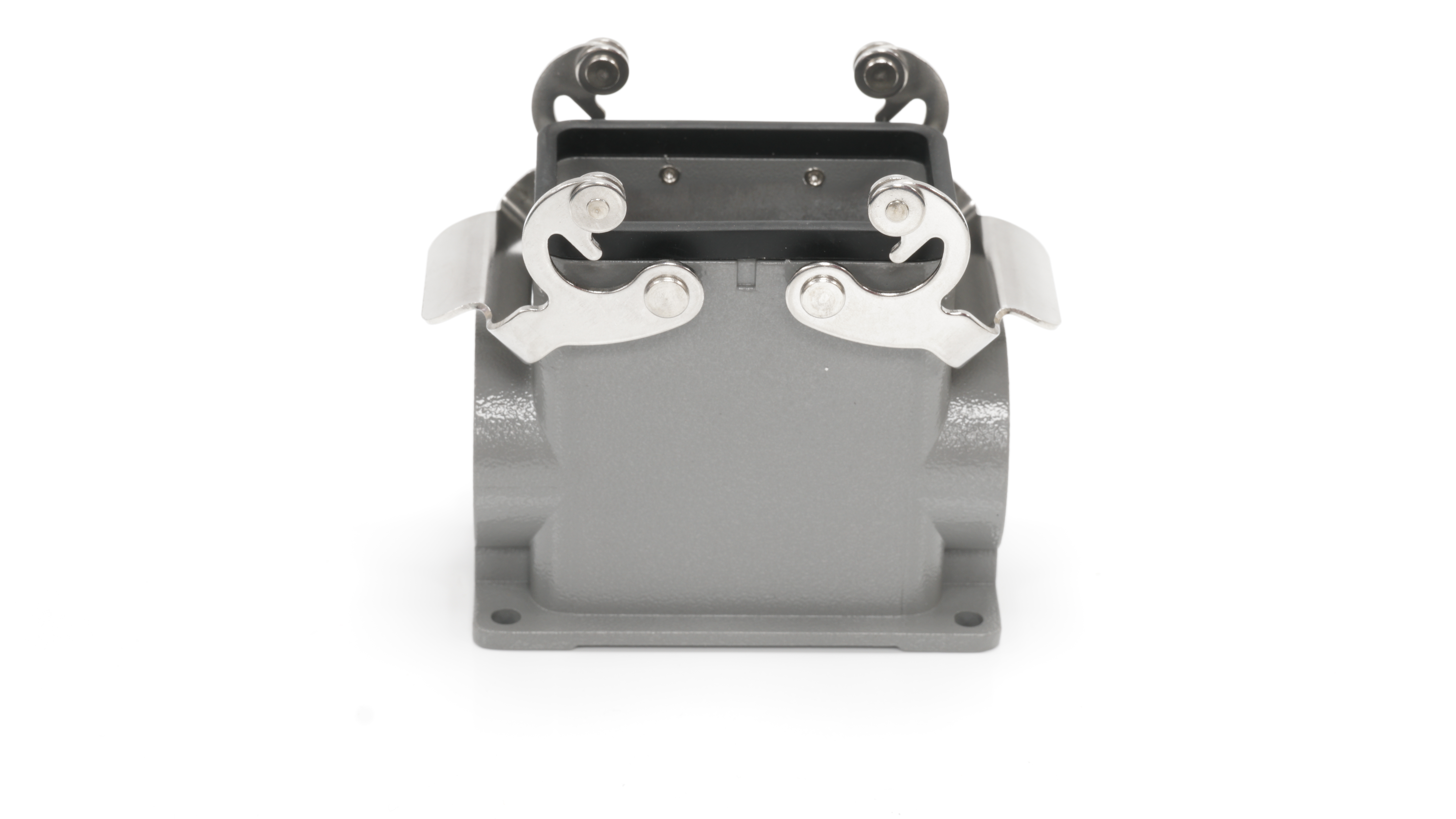 This is Side Entry Heavy Duty Power Connector Housing Surface Mount manufactured by RS PRO. The manufacturer part number is 208-4841. Its cable entry is from side angle . The product is available in surface mount configuration. It is IP rated with ip65. The product rs-h10b, is a highly preferred choice for users. It has side entry body orientation. It has a typical thread size of m25. Whereas, the rs-h10b is the manufacture's size code. The product is highly suitable for rs pro heavy duty inserts and pg or m style cable glands. It includes 2 levers . It comes in connector housing configuration.