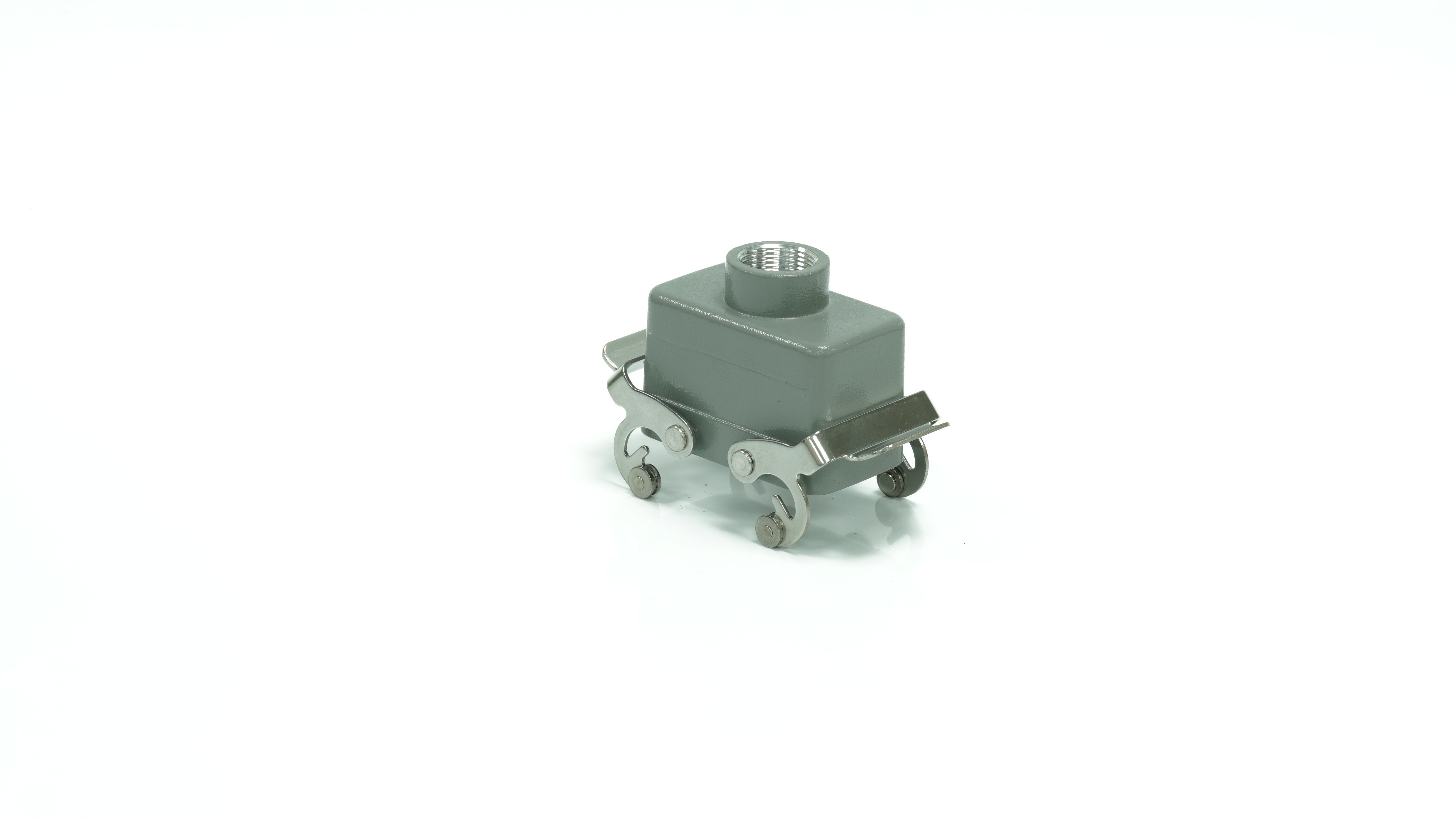 This is Top Entry Heavy Duty Power Connector Housing Top Mount manufactured by RS PRO. The manufacturer part number is 208-4867. Its cable entry is from top angle . The product is available in top mount configuration. It is IP rated with ip65. The product rs-h10b, is a highly preferred choice for users. It has top entry body orientation. It has a typical thread size of pg16. The product is highly suitable for rs pro heavy duty inserts and pg or m style cable glands. It includes 2 levers . It comes in connector hood configuration.