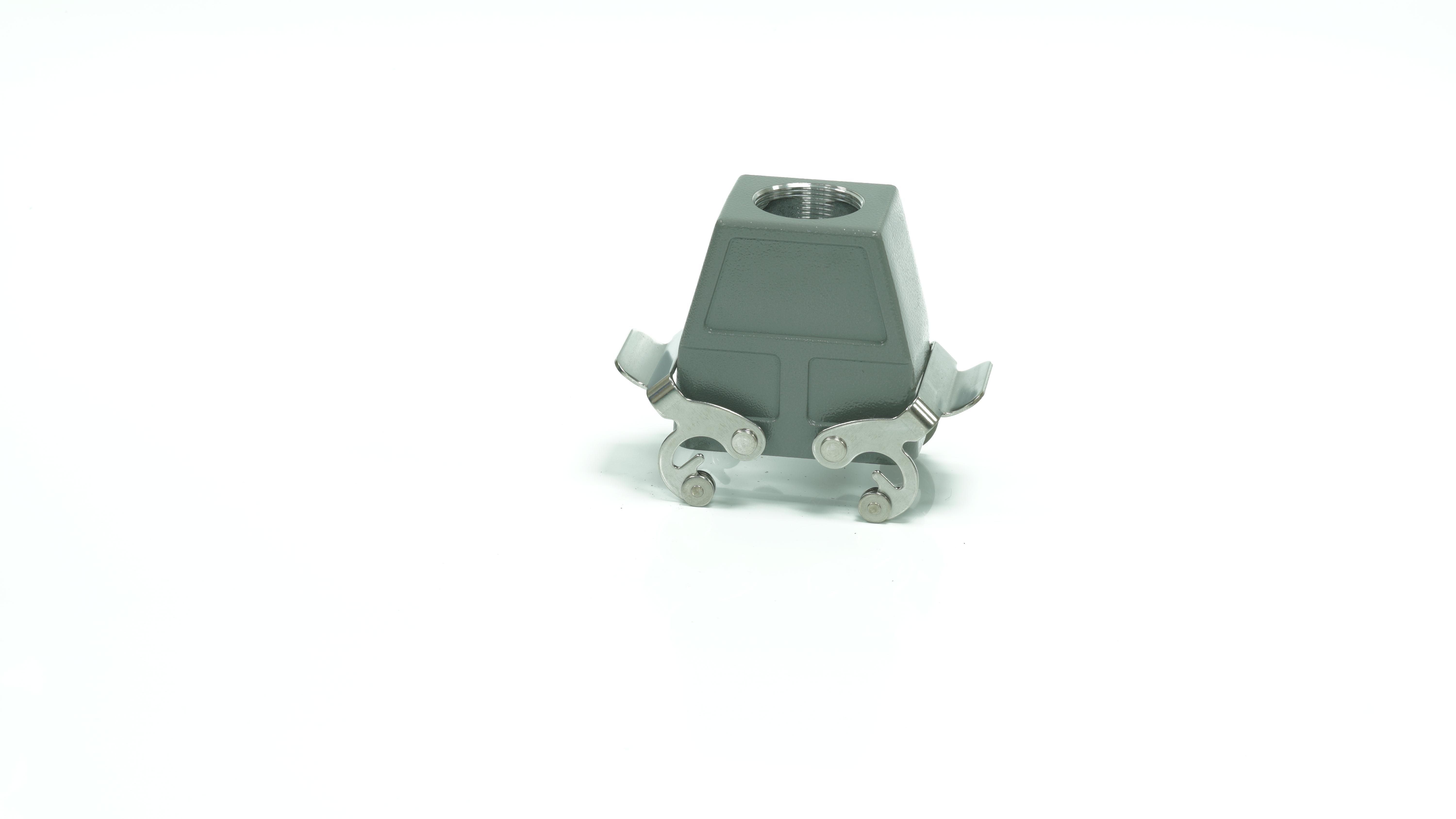 This is Top Entry Heavy Duty Power Connector Housing Top Mount manufactured by RS PRO. The manufacturer part number is 208-4877. Its cable entry is from top angle . The product is available in top mount configuration. It is IP rated with ip65. The product rs-h10b, is a highly preferred choice for users. It has top entry body orientation. It has a typical thread size of m32. The product is highly suitable for rs pro heavy duty inserts and pg or m style cable glands. It includes 2 levers . It comes in connector hood configuration.