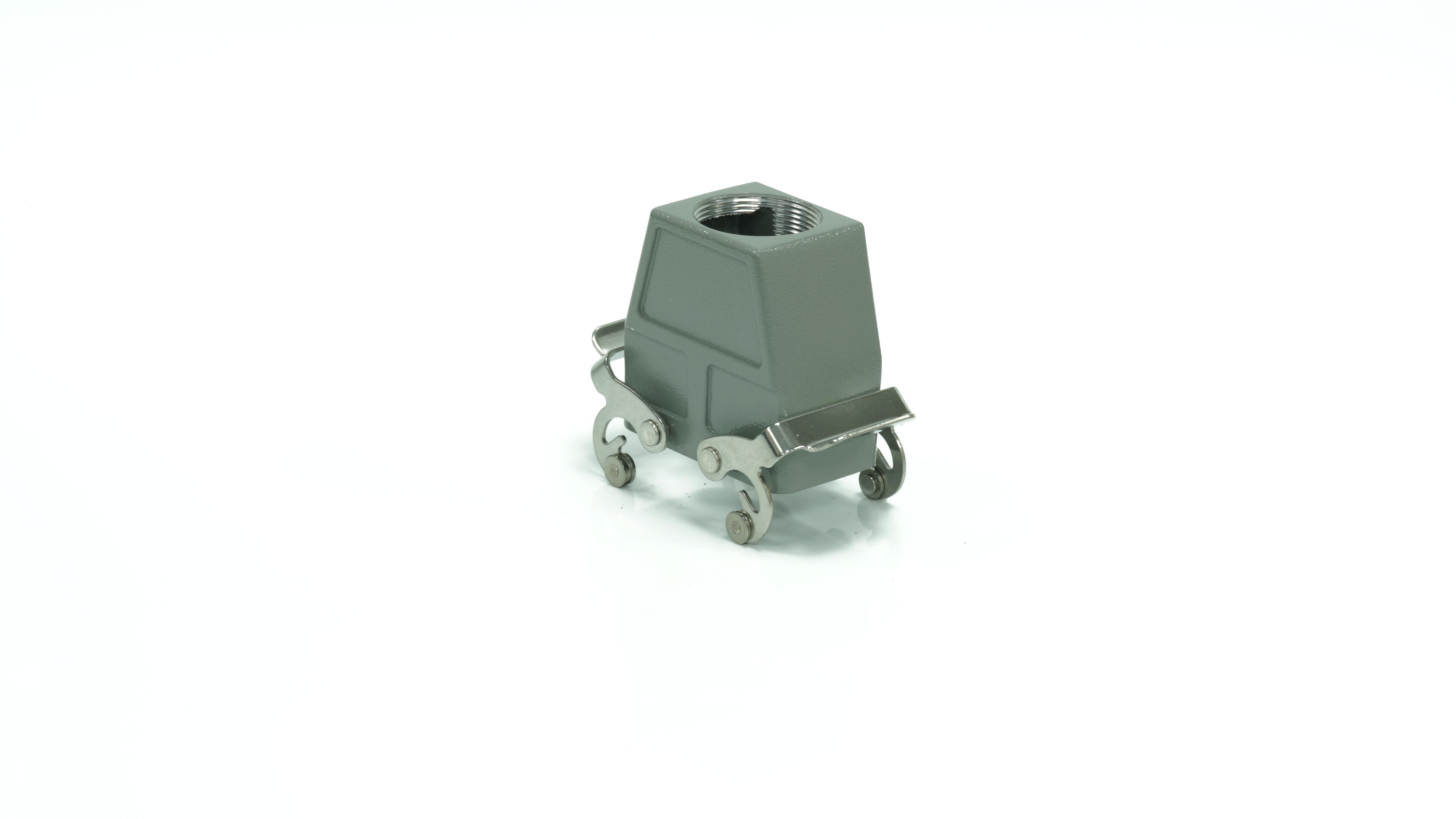 This is Top Entry Heavy Duty Power Connector Housing Top Mount manufactured by RS PRO. The manufacturer part number is 208-4879. Its cable entry is from top angle . The product is available in top mount configuration. It is IP rated with ip65. The product rs-h10b, is a highly preferred choice for users. It has top entry body orientation. It has a typical thread size of pg29. The product is highly suitable for rs pro heavy duty inserts and pg or m style cable glands. It includes 2 levers . It comes in connector hood configuration.