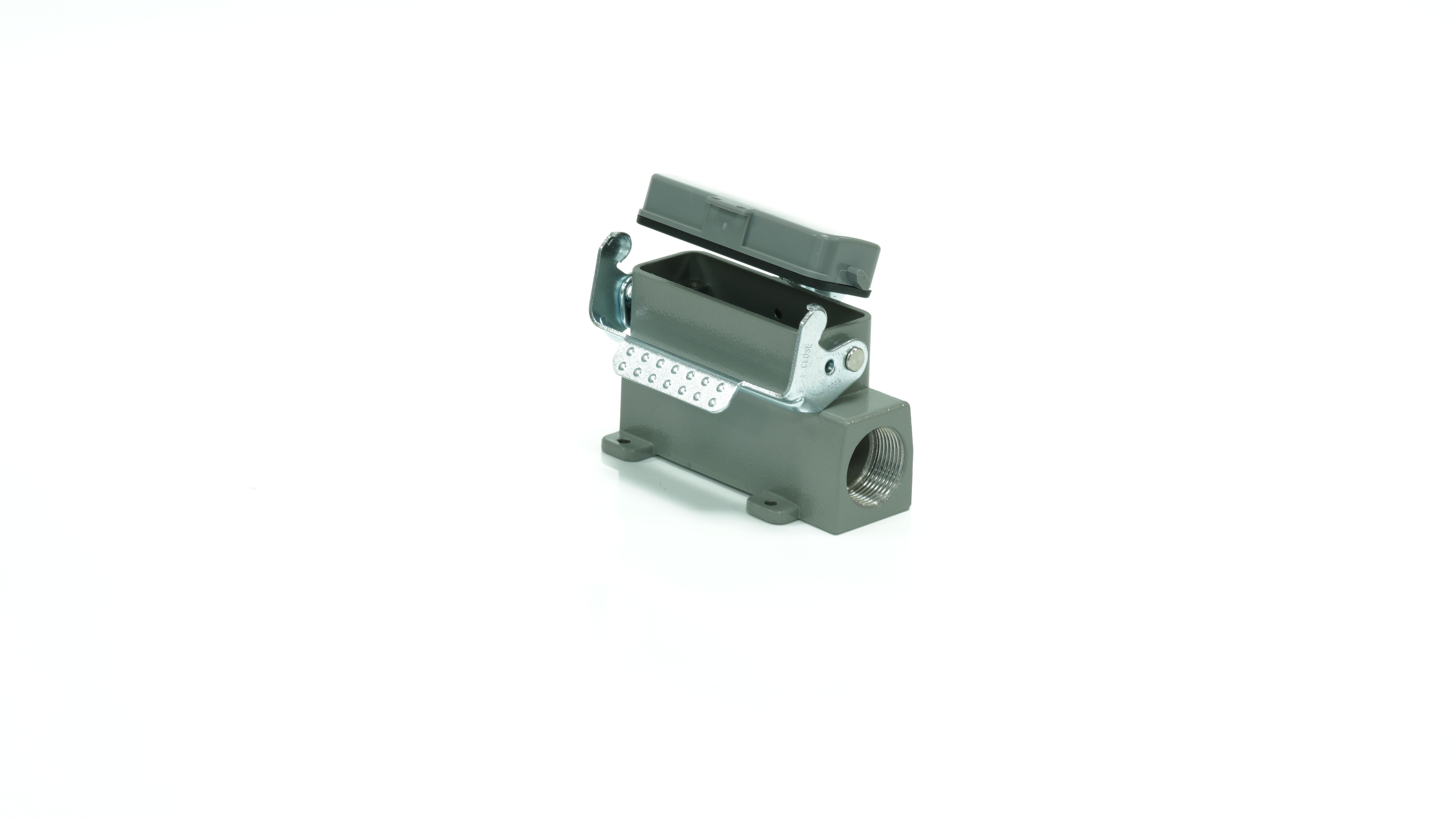 This is Side Entry Heavy Duty Power Connector Housing Surface Mount manufactured by RS PRO. The manufacturer part number is 208-4900. Its cable entry is from side angle . The product is available in surface mount configuration. It is IP rated with ip65. The product rs-h16a, is a highly preferred choice for users. It has side entry body orientation. It has a typical thread size of m25. The product is highly suitable for rs pro heavy duty inserts and pg or m style cable glands. It includes 1 levers . It comes in connector housing configuration.