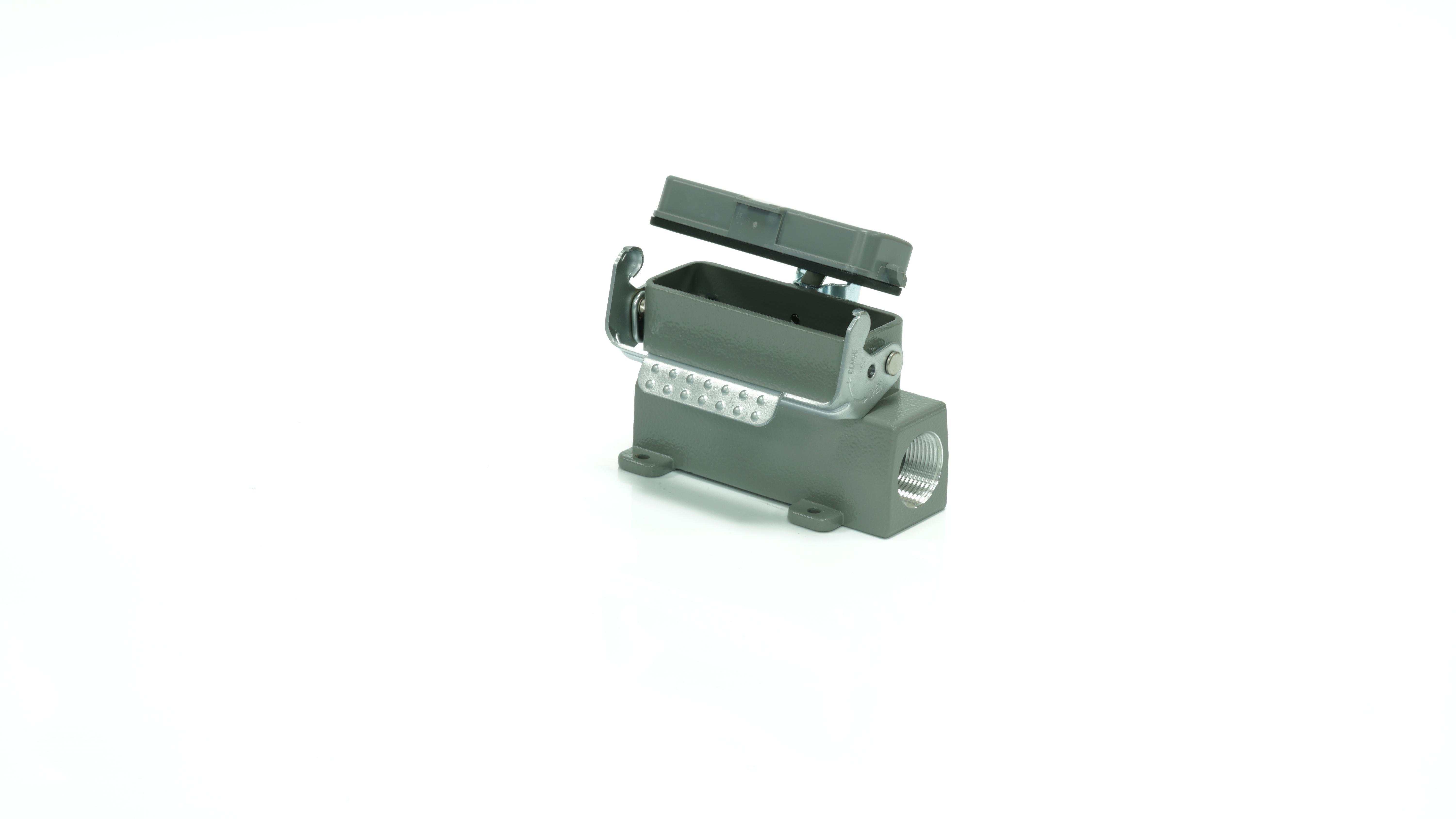 This is Side Entry Heavy Duty Power Connector Housing Surface Mount manufactured by RS PRO. The manufacturer part number is 208-4901. Its cable entry is from side angle . The product is available in surface mount configuration. It is IP rated with ip65. The product rs-h16a, is a highly preferred choice for users. It has side entry body orientation. It has a typical thread size of pg16. The product is highly suitable for rs pro heavy duty inserts and pg or m style cable glands. It includes 1 levers . It comes in connector housing configuration.