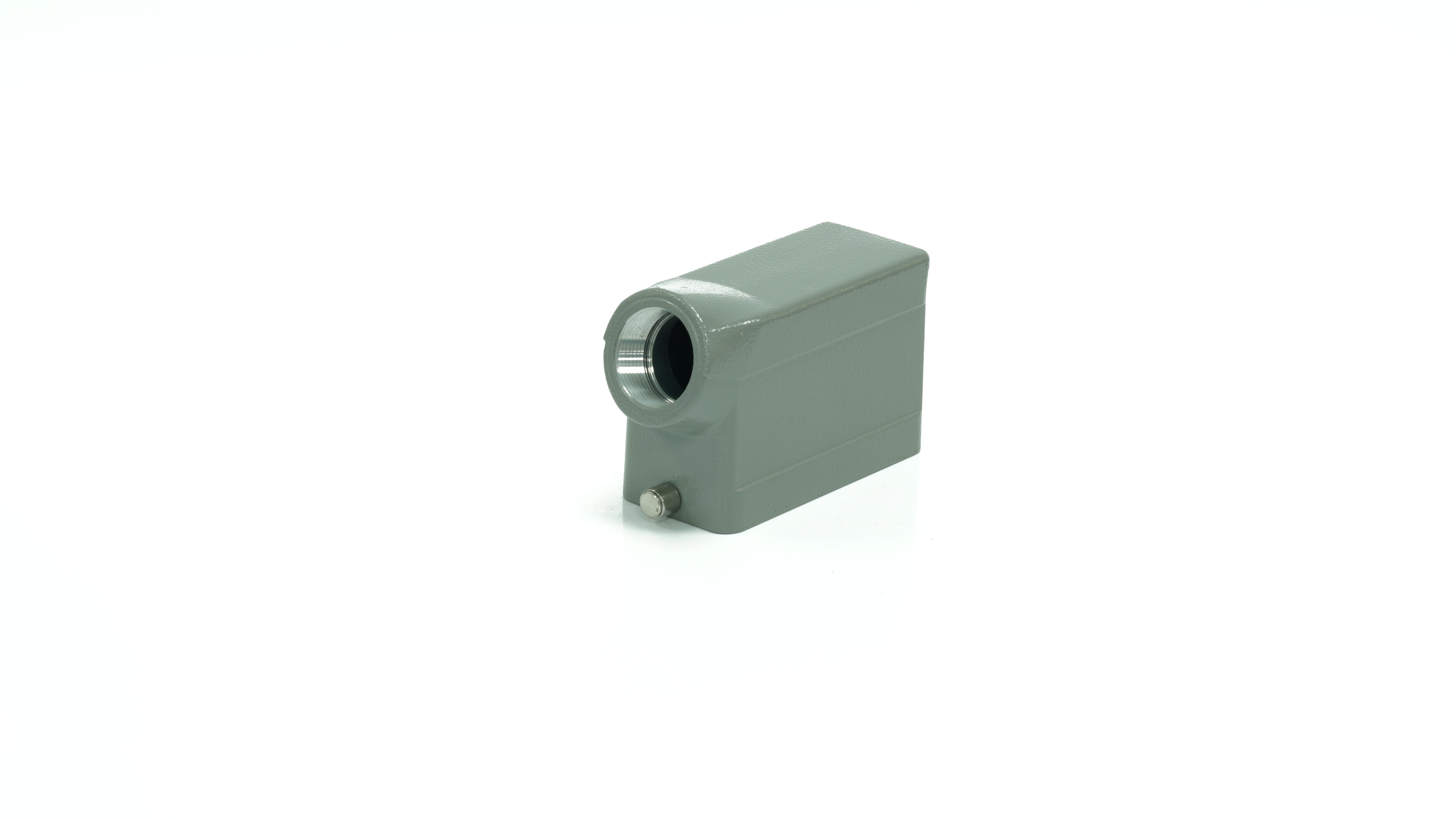 This is Side Entry Heavy Duty Power Connector Housing manufactured by RS PRO. The manufacturer part number is 208-4936. Its cable entry is from side angle . The product is available in top mount configuration. It is IP rated with ip65. The product rs-h16b, is a highly preferred choice for users. It has side entry body orientation. It has a typical thread size of pg21. Whereas, the rs-h16b is the manufacture's size code. The product is highly suitable for rs pro heavy duty inserts and pg or m style cable glands. It includes 2 levers . It comes in connector hood configuration.