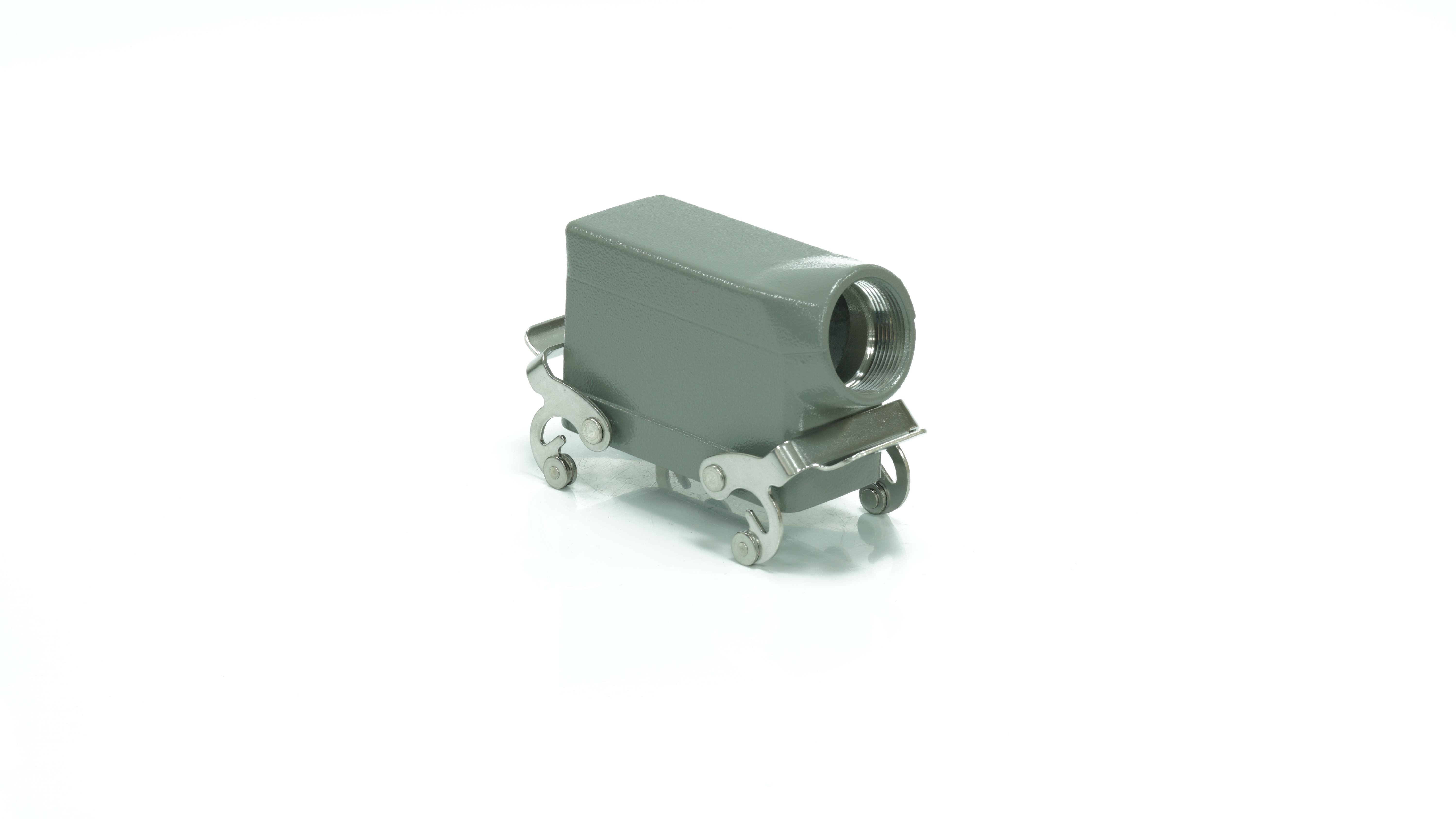 This is Side Entry Heavy Duty Power Connector Housing manufactured by RS PRO. The manufacturer part number is 208-4939. Its cable entry is from side angle . It is IP rated with ip65. The product rs-h16b, is a highly preferred choice for users. It has side entry body orientation. It has a typical thread size of m32. The product is highly suitable for rs pro heavy duty inserts and pg or m style cable glands. It includes 2 levers . It comes in connector hood configuration.