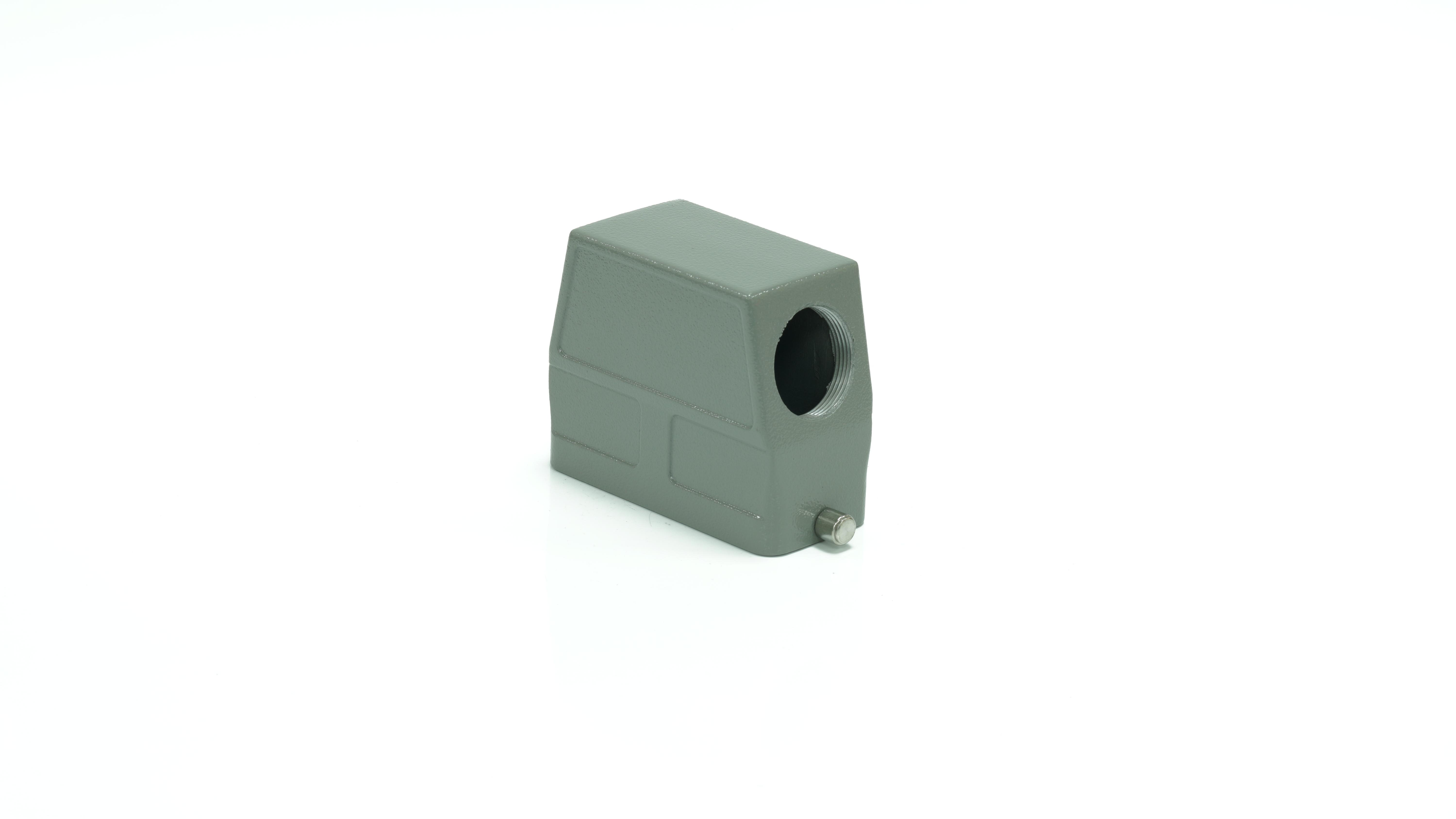 This is Side Entry Heavy Duty Power Connector Housing manufactured by RS PRO. The manufacturer part number is 208-4945. Its cable entry is from side angle . The product is available in top mount configuration. It is IP rated with ip65. The product rs-h16b, is a highly preferred choice for users. It has side entry body orientation. It has a typical thread size of m32. Whereas, the rs-h16b is the manufacture's size code. The product is highly suitable for rs pro heavy duty inserts and pg or m style cable glands. It includes 2 levers . It comes in connector hood configuration.
