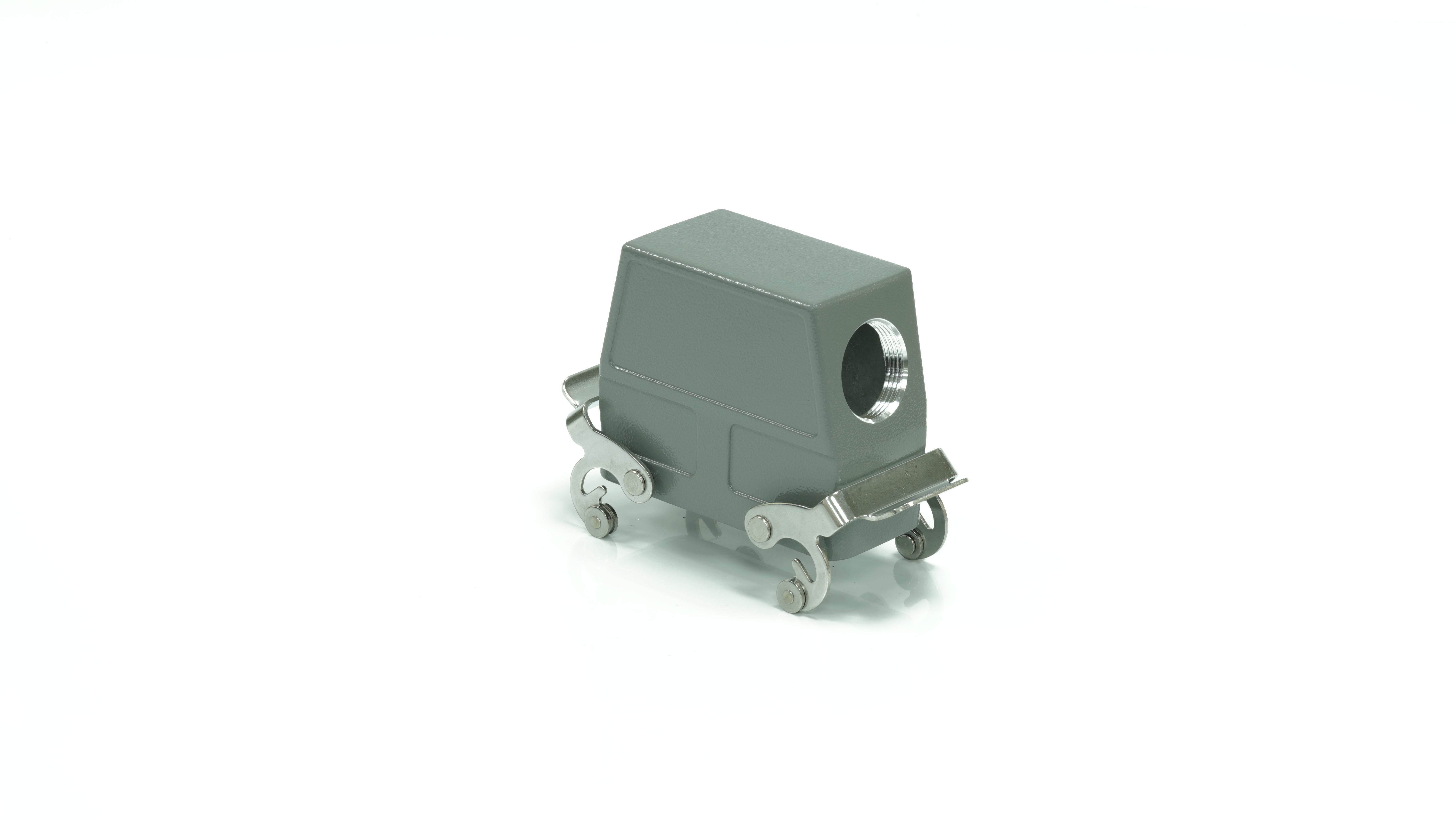 This is Side Entry Heavy Duty Power Connector Housing manufactured by RS PRO. The manufacturer part number is 208-4951. Its cable entry is from side angle . It is IP rated with ip65. The product rs-h16b, is a highly preferred choice for users. It has side entry body orientation. It has a typical thread size of pg21. The product is highly suitable for rs pro heavy duty inserts and pg or m style cable glands. It includes 2 levers . It comes in connector hood configuration.