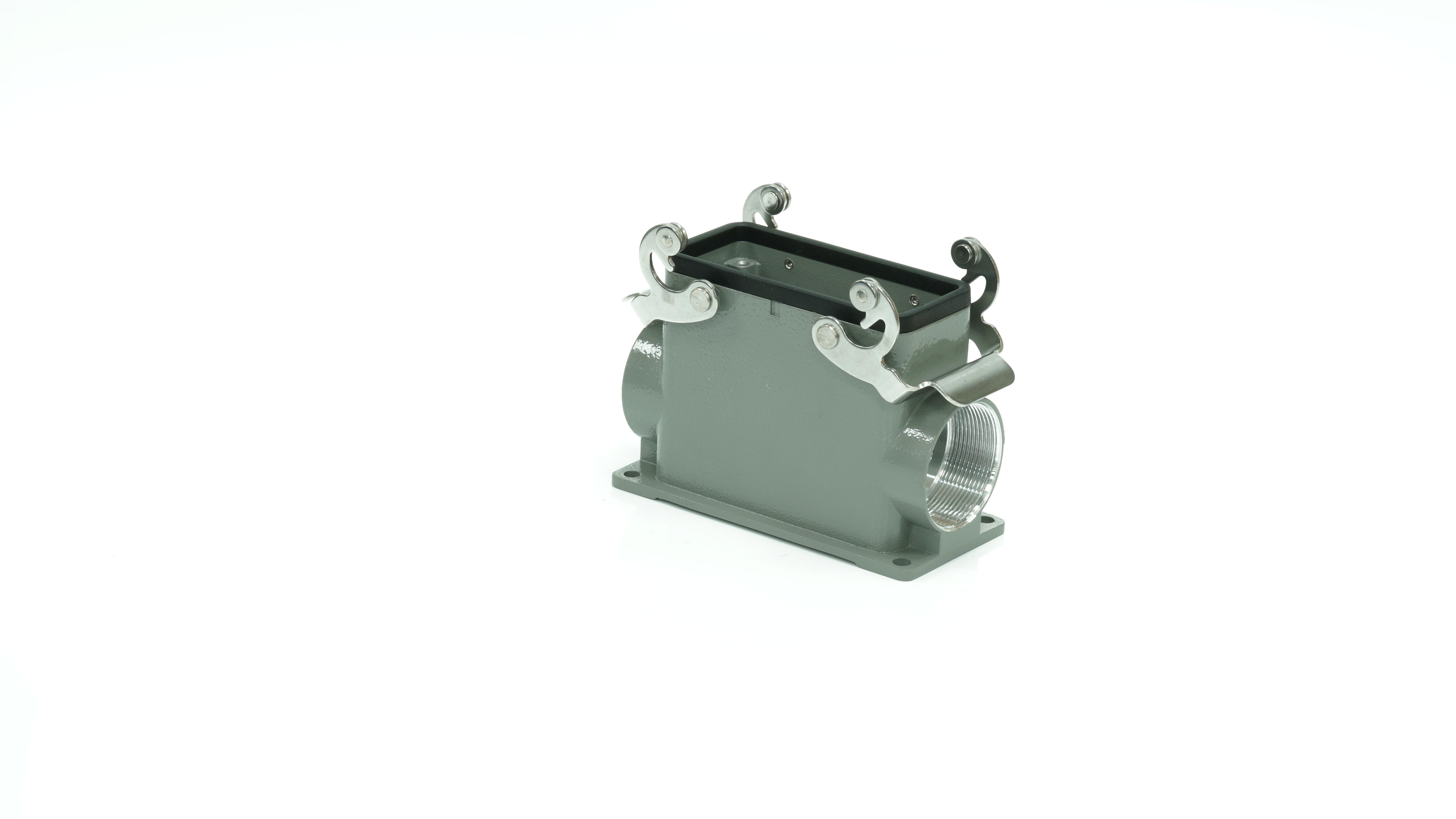 This is Side Entry Heavy Duty Power Connector Housing Surface Mount manufactured by RS PRO. The manufacturer part number is 208-4996. Its cable entry is from side angle . The product is available in surface mount configuration. It is IP rated with ip65. The product rs-h16b, is a highly preferred choice for users. It has side entry body orientation. It has a typical thread size of m40. The product is highly suitable for rs pro heavy duty inserts and pg or m style cable glands. It includes 2 levers . It comes in connector housing configuration.