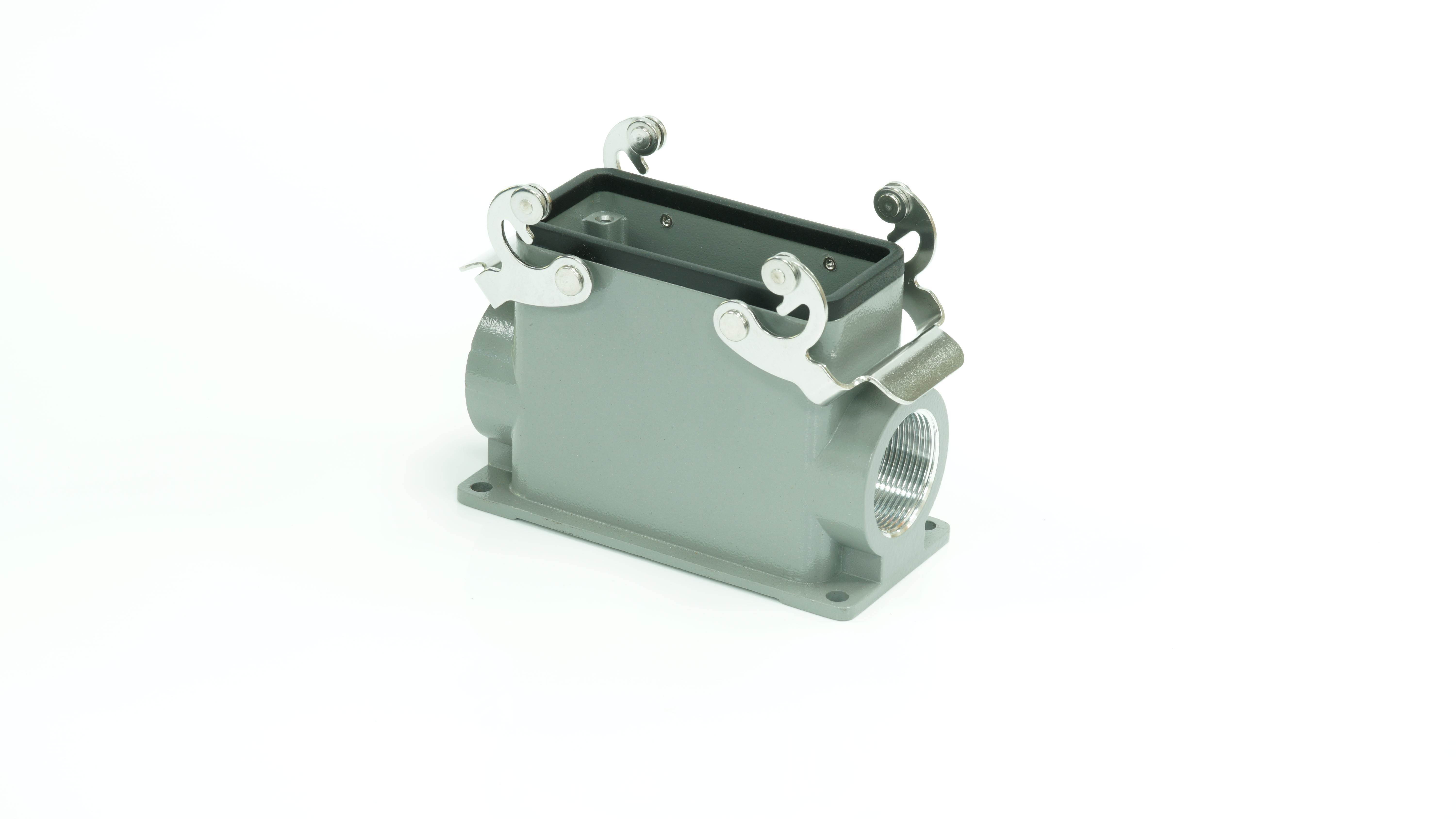 This is Side Entry Heavy Duty Power Connector Housing Surface Mount manufactured by RS PRO. The manufacturer part number is 208-4999. Its cable entry is from side angle . The product is available in surface mount configuration. It is IP rated with ip65. The product rs-h16b, is a highly preferred choice for users. It has side entry body orientation. It has a typical thread size of m32. The product is highly suitable for rs pro heavy duty inserts and pg or m style cable glands. It includes 2 levers . It comes in connector housing configuration.