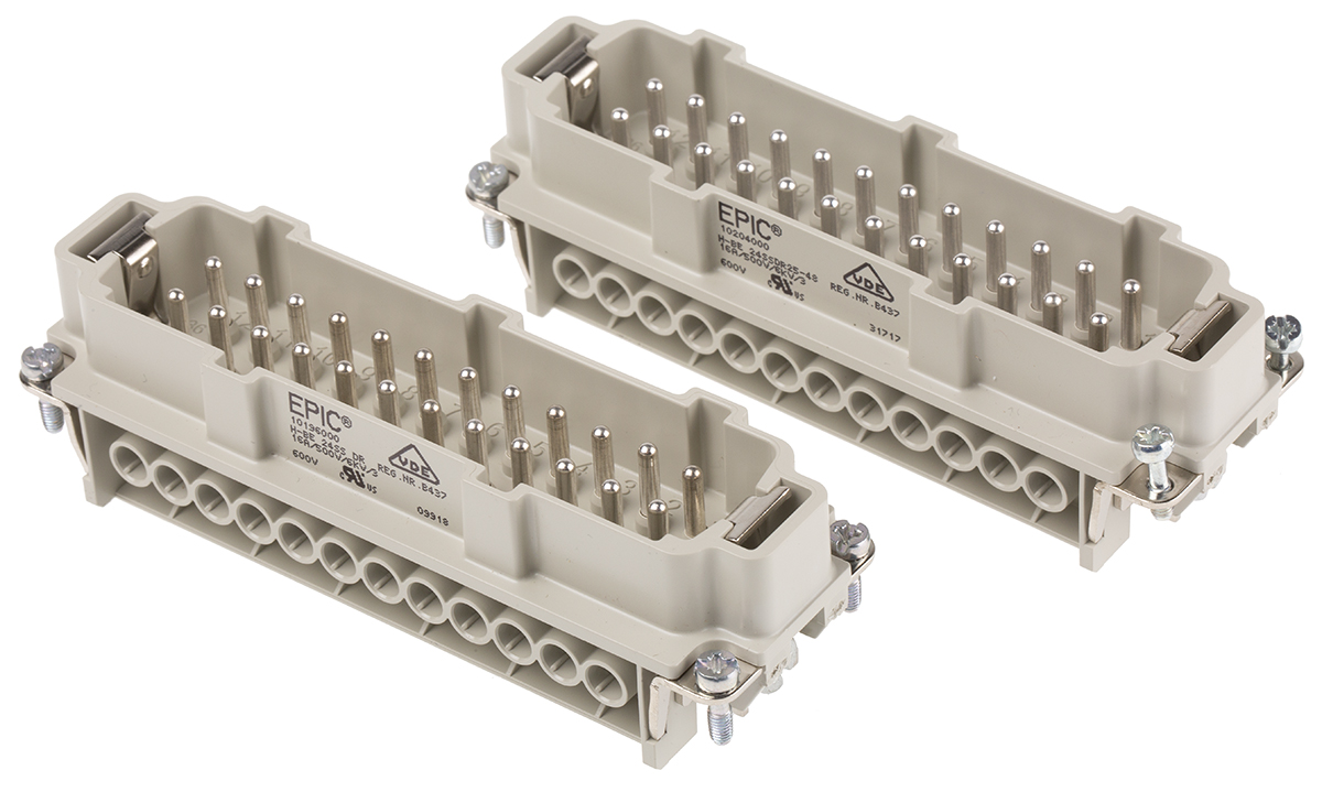 This is H-BE Series Connector Insert Male 48 Way 16A 440 V ac manufactured by Epic Contact. The manufacturer part number is 10196000+10204000. The product has a current rating of 16a. It is IP rated with ip65. In addition, male is the available "Gender" of the product. Moreover, the product has a nominal 440 v ac voltage rating. While the pole has 48p+e format. It allows screw down termination method. The product h-be, is a highly preferred choice for users. The product contains 48 contacts. It comes in connector insert configuration.