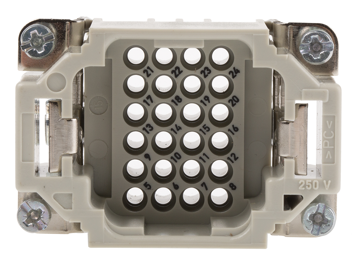 This is H-DD Series Cable Mount Connector Insert Male 25 Way 10A 600 V manufactured by Epic Contact. The manufacturer part number is 11285000. The product has a current rating of 10a. The product is available in cable mount configuration. Moreover, the product has a nominal 600 v voltage rating. In addition, male is the available "Gender" of the product. It has straight body orientation. It allows crimp termination method. While the pole has 25p format. It comes in 4 of rows. The high-quality gold, silver is used as contact plating material. The product h-dd, is a highly preferred choice for users. The product contains 25 contacts. It comes in connector insert configuration. The product is made from sturdy copper alloy materials.