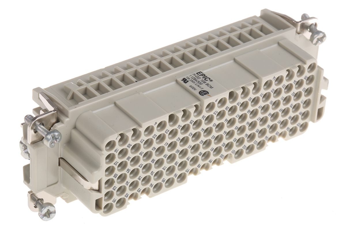 This is H-DD Series White Cable Mount 108P+E Heavy Duty Power Connector Socket Rated At 8.5A 600 V manufactured by Epic Contact. The manufacturer part number is 11286300. The product has a current rating of 8.5a. The product is available in cable mount configuration. Moreover, the product has a nominal 600.0 v voltage rating. In addition, male is the available "Gender" of the product. It has straight body orientation. It allows crimp termination method. While the pole has 108p+e format. The product h-dd, is a highly preferred choice for users.