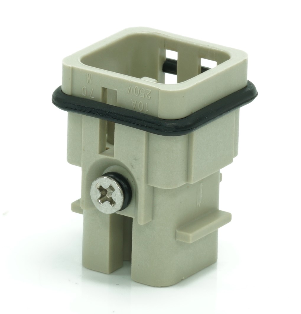 This is Heavy Duty Power Connector Insert 7 contacts 10A Male manufactured by RS PRO. The manufacturer part number is 208-4344. The product has a current rating of 10a. Moreover, the product has a nominal 250v voltage rating. In addition, male is the available "Gender" of the product. It has straight body orientation. While the pole has 7 format. It features rs-hd range. The high-quality silver is used as contact plating material. The product rs-hd, is a highly preferred choice for users. The product is highly suitable for rs pro 10a crimps. The product contains 7 contacts. It comes in connector insert configuration. The product is made from sturdy copper alloy materials.