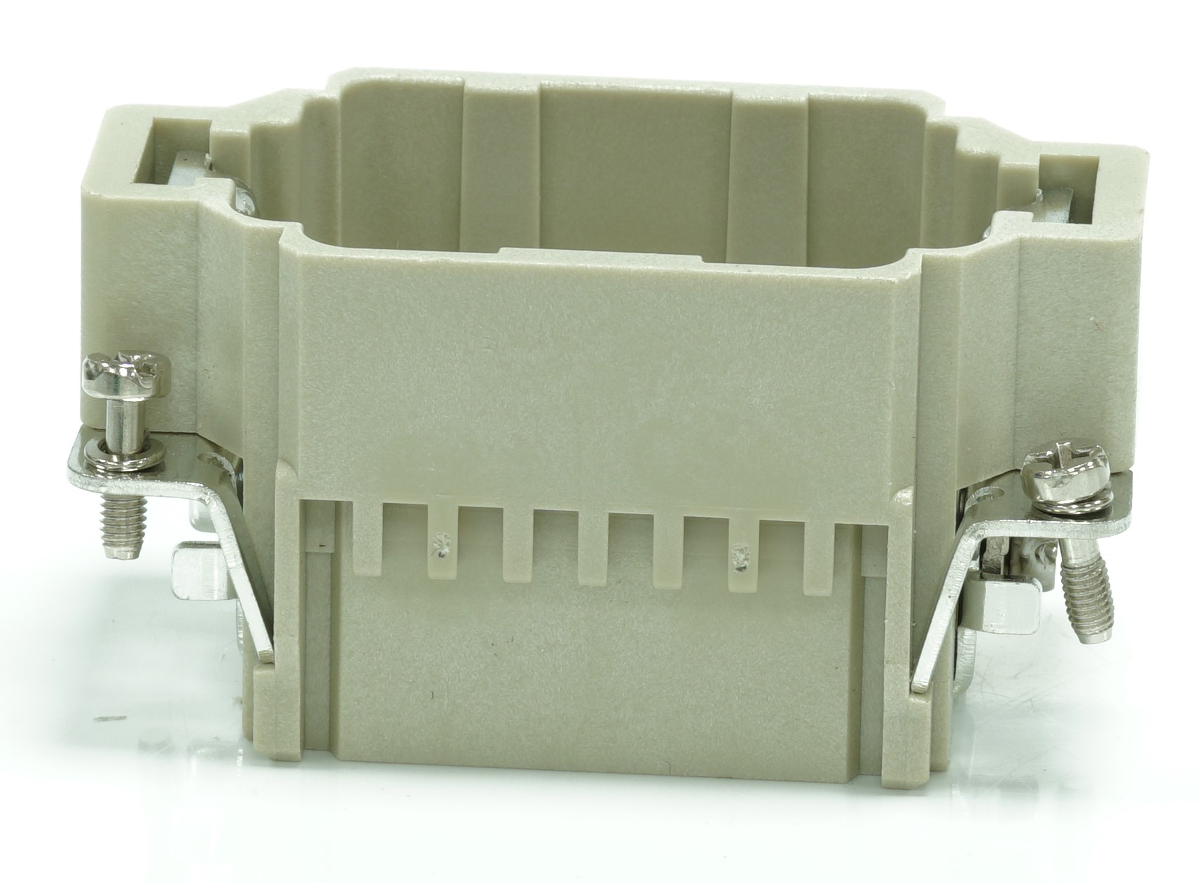 This is Heavy Duty Power Connector Insert 42 contacts 10A Male manufactured by RS PRO. The manufacturer part number is 208-4367. The product has a current rating of 10a. Moreover, the product has a nominal 250v voltage rating. In addition, male is the available "Gender" of the product. It has straight body orientation. While the pole has 42 format. It features rs-hdd range. The high-quality silver is used as contact plating material. The product rs-hdd, is a highly preferred choice for users. The product is highly suitable for rs pro 10a crimps. The product contains 42 contacts. It comes in connector insert configuration. The product is made from sturdy copper alloy materials.