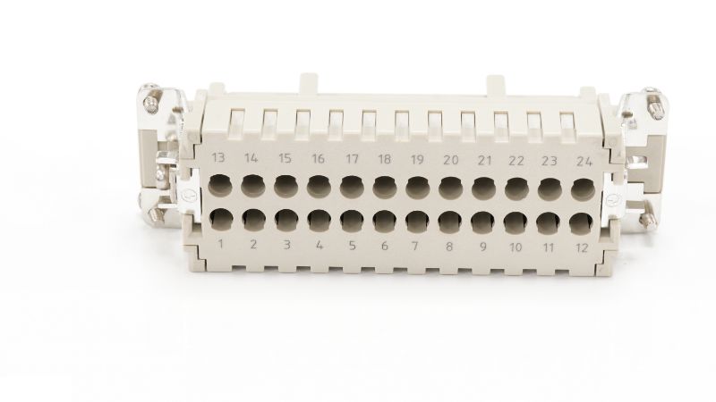 This is Heavy Duty Power Connector Insert 24 contacts 16A Female manufactured by RS PRO. The manufacturer part number is 208-4507. On the other hand, the wire has 0.14mm² of minimum size. The product has a current rating of 16a. The wire has a maximum size of 4mm². Moreover, the product has a nominal 500v voltage rating. In addition, female is the available "Gender" of the product. It has straight body orientation. While the pole has 24 format. It features rs-he range. The high-quality silver is used as contact plating material. The product rs-he, is a highly preferred choice for users. The product is highly suitable for heavy duty power connectors. The product contains 24 contacts. It comes in connector insert configuration. The product is made from sturdy copper alloy materials.