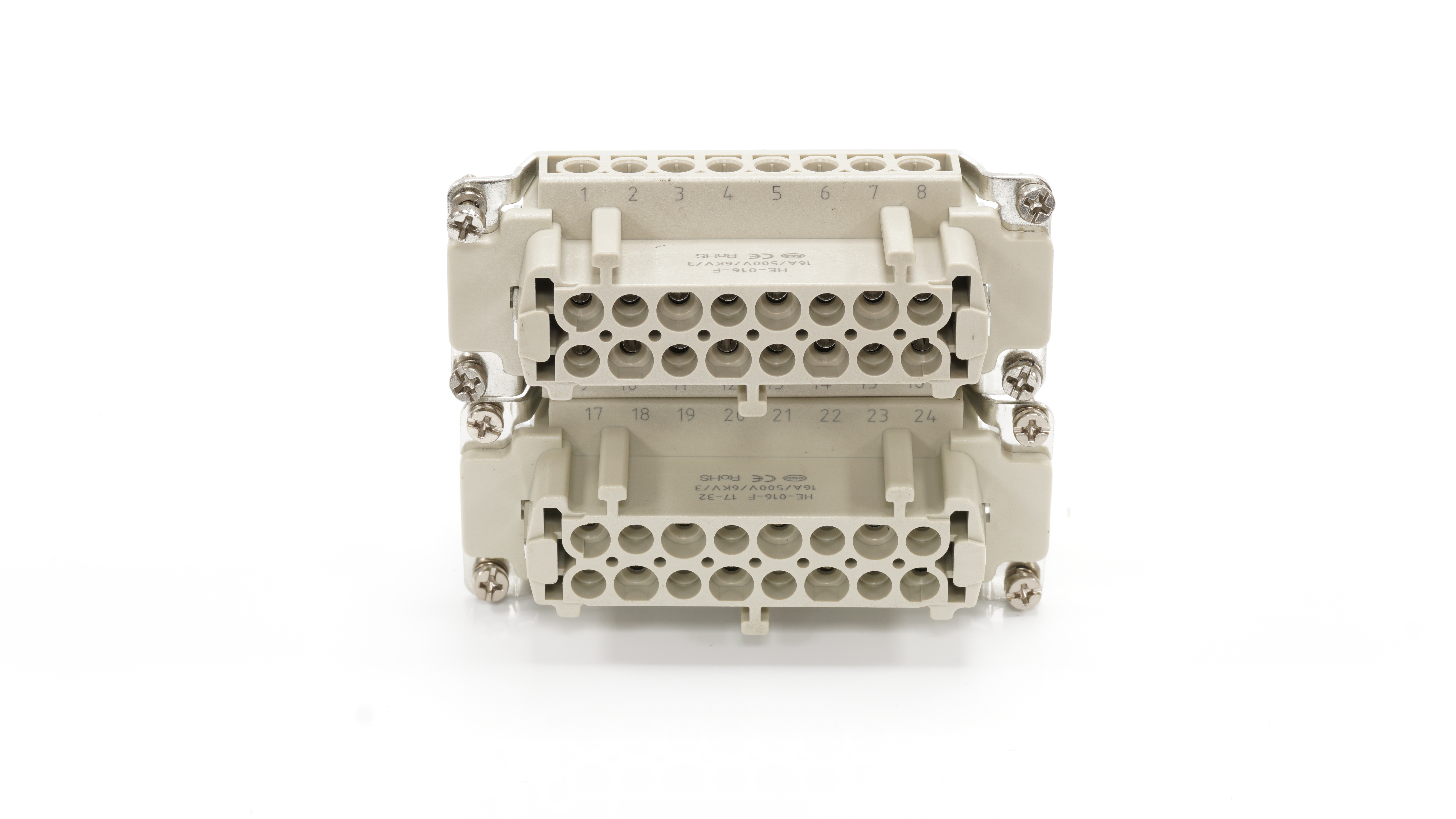This is Heavy Duty Power Connector Insert 32 contacts 16A Female manufactured by RS PRO. The manufacturer part number is 208-4513. On the other hand, the wire has 0.14mm² of minimum size. The product has a current rating of 16a. The wire has a maximum size of 2.5mm². Moreover, the product has a nominal 500v voltage rating. In addition, female is the available "Gender" of the product. It has straight body orientation. While the pole has 32 format. It features rs-he range. The high-quality silver is used as contact plating material. The product rs-he, is a highly preferred choice for users. The product is highly suitable for heavy duty power connectors. The product contains 32 contacts. It comes in connector insert configuration. The product is made from sturdy copper alloy materials.