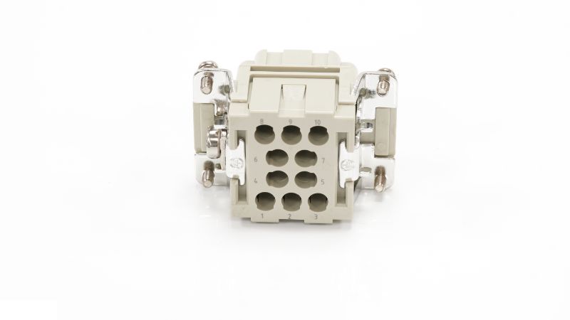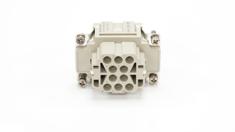 This is Heavy Duty Power Connector Insert 10 contacts 16A Female manufactured by RS PRO. The manufacturer part number is 208-4525. The product has a current rating of 16a. In addition, female is the available "Gender" of the product. While the pole has 10 format. The high-quality silver is used as contact plating material. The product hee, is a highly preferred choice for users. The product is highly suitable for heavy duty power connectors. The product contains 10 contacts. It comes in connector insert configuration. The product is made from sturdy copper alloy materials.