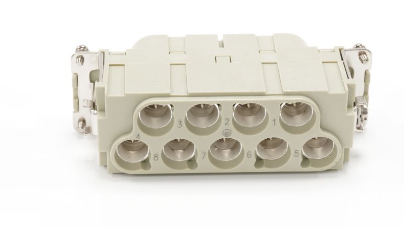 This is Heavy Duty Power Connector Insert 8 contacts 100A Male manufactured by RS PRO. The manufacturer part number is 208-4564. The product has a current rating of 100a. Moreover, the product has a nominal 690v voltage rating. In addition, male is the available "Gender" of the product. It has straight body orientation. While the pole has 8 format. It features rs-hk range. The high-quality silver is used as contact plating material. The product rs-hk, is a highly preferred choice for users. The product is highly suitable for heavy duty power connectors. The product contains 8 contacts. It comes in connector insert configuration. The product is made from sturdy copper alloy materials.