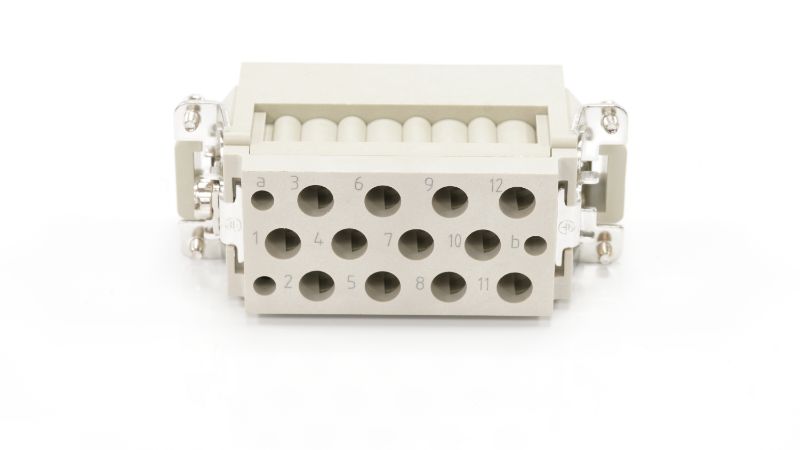 This is Heavy Duty Power Connector Insert 12 → 2 contacts 10 → 40A Male manufactured by RS PRO. The manufacturer part number is 208-4568. The product has a current rating of 10 → 40a. Moreover, the product has a nominal 690v/250v voltage rating. In addition, male is the available "Gender" of the product. While the pole has 12+2 format. The high-quality silver is used as contact plating material. The product hk, is a highly preferred choice for users. The product is highly suitable for heavy duty power connectors. The product contains 12 → 2 contacts. It comes in connector insert configuration. The product is made from sturdy copper alloy materials.