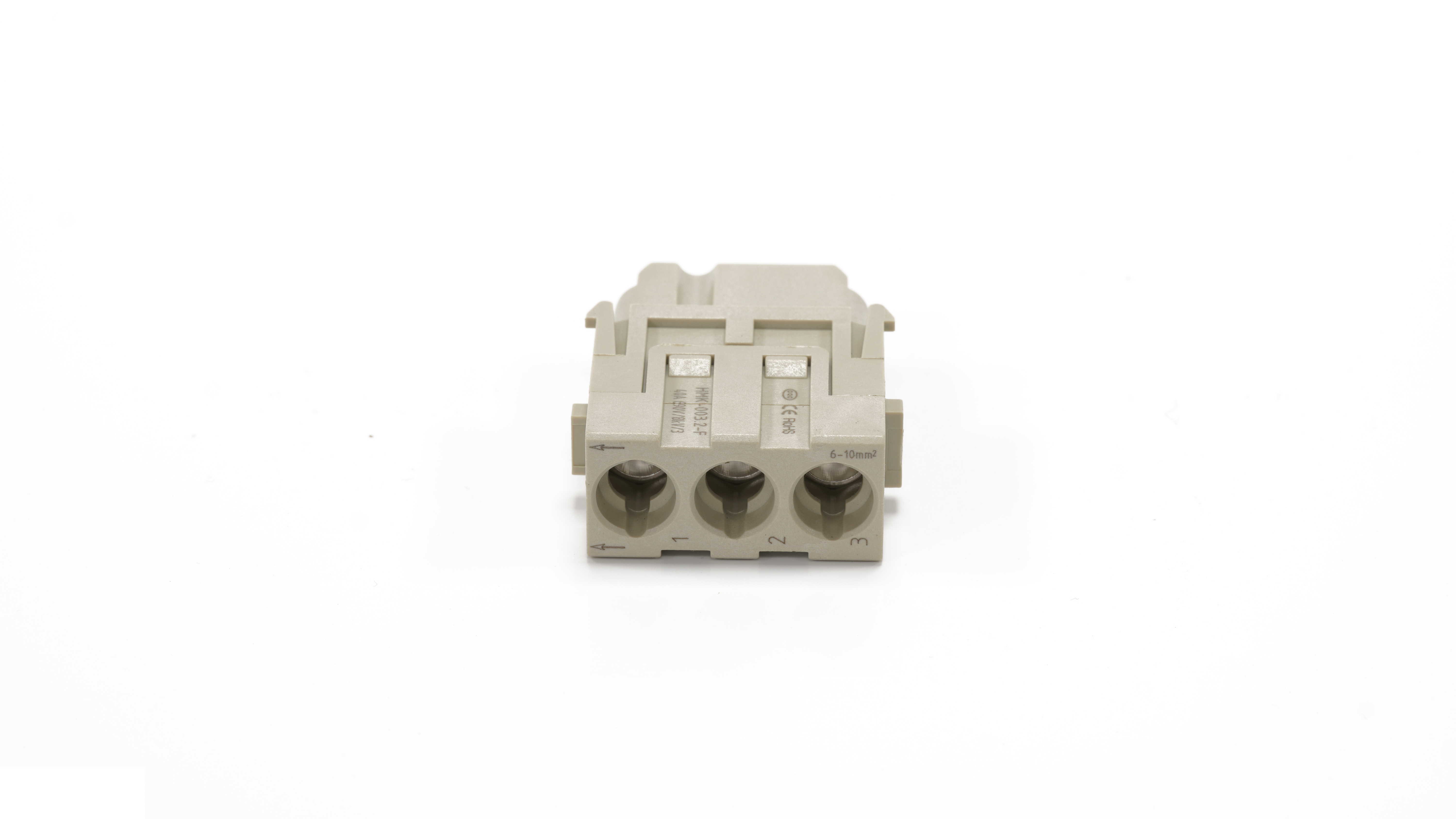 This is Heavy Duty Power Connector Insert 3 contacts 40A Female manufactured by RS PRO. The manufacturer part number is 208-4591. The wire has a maximum size of 10mm². The product has a current rating of 40a. The high-quality silver is used as contact plating material. Moreover, the product has a nominal 690v voltage rating. In addition, female is the available "Gender" of the product. It has straight body orientation. While the pole has 3 format. On the other hand, the wire has 6mm² of minimum size. It features rs-hmk range. The product rs-hmk, is a highly preferred choice for users. The product is highly suitable for heavy duty power connectors. The product contains 3 contacts. It comes in connector insert configuration. The product is made from sturdy copper alloy materials.