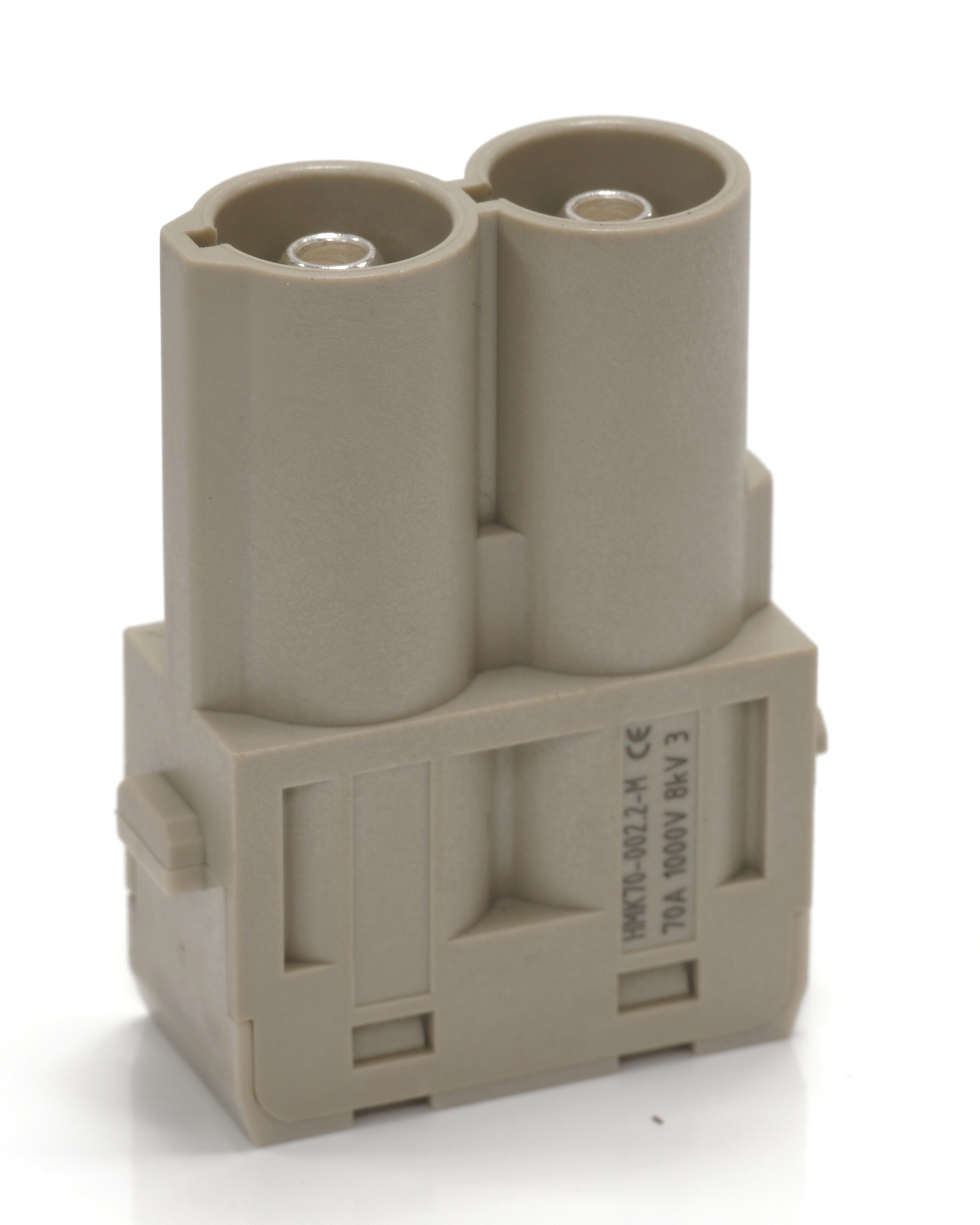 This is Heavy Duty Power Connector Insert 2 contacts 70A Female manufactured by RS PRO. The manufacturer part number is 208-4600. The product has a current rating of 70a. Moreover, the product has a nominal 1000 v voltage rating. In addition, female is the available "Gender" of the product. While the pole has 2 format. The high-quality silver is used as contact plating material. The product hmk70, is a highly preferred choice for users. The product is highly suitable for heavy duty power connectors. The product contains 2 contacts. It comes in connector insert configuration. The product is made from sturdy copper alloy materials.