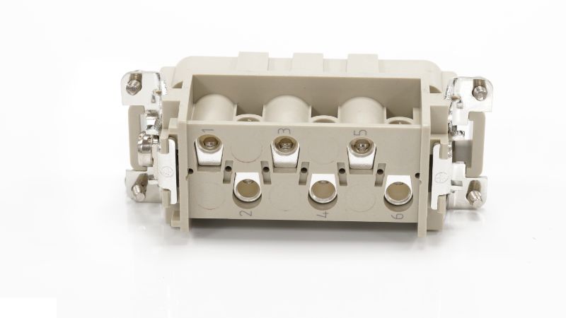 This is Heavy Duty Power Connector Insert 6 contacts 35A Male manufactured by RS PRO. The manufacturer part number is 208-4613. On the other hand, the wire has 1.5mm² of minimum size. The product has a current rating of 35a. The wire has a maximum size of 6mm². Moreover, the product has a nominal 400v voltage rating. In addition, male is the available "Gender" of the product. It has straight body orientation. While the pole has 6 format. It features rs-hsb range. The high-quality silver is used as contact plating material. The product rs-hsb, is a highly preferred choice for users. The product is highly suitable for heavy duty power connectors. The product contains 6 contacts. It comes in connector insert configuration. The product is made from sturdy copper alloy materials.