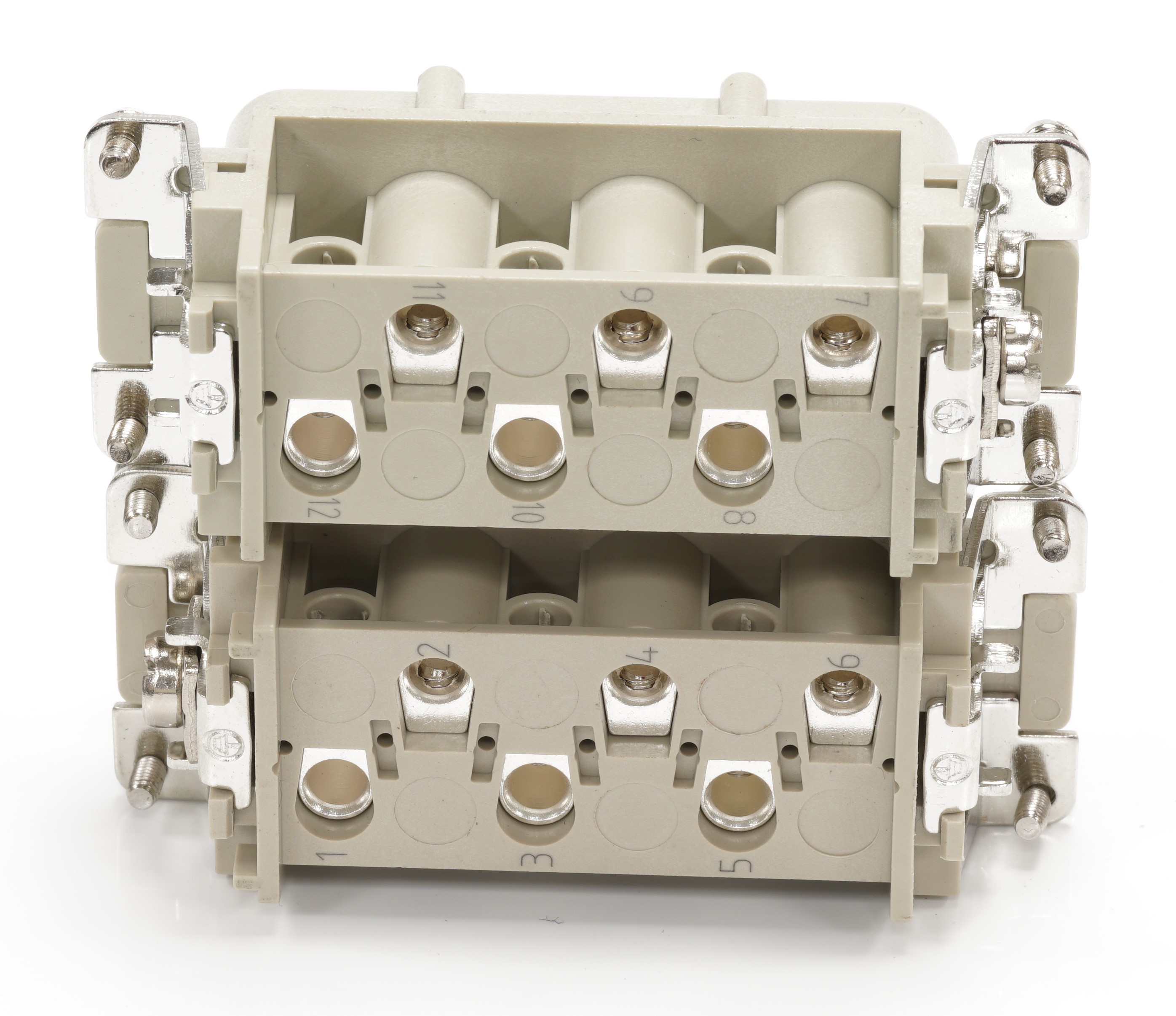This is Heavy Duty Power Connector Insert 12 contacts 35A Female manufactured by RS PRO. The manufacturer part number is 208-4614. On the other hand, the wire has 1.5mm² of minimum size. The product has a current rating of 35a. The wire has a maximum size of 6mm². Moreover, the product has a nominal 400v voltage rating. In addition, female is the available "Gender" of the product. It has straight body orientation. While the pole has 6 format. It features rs-hsb range. The high-quality silver is used as contact plating material. The product rs-hsb, is a highly preferred choice for users. The product is highly suitable for heavy duty power connectors. The product contains 12 contacts. It comes in connector insert configuration. The product is made from sturdy copper alloy materials.