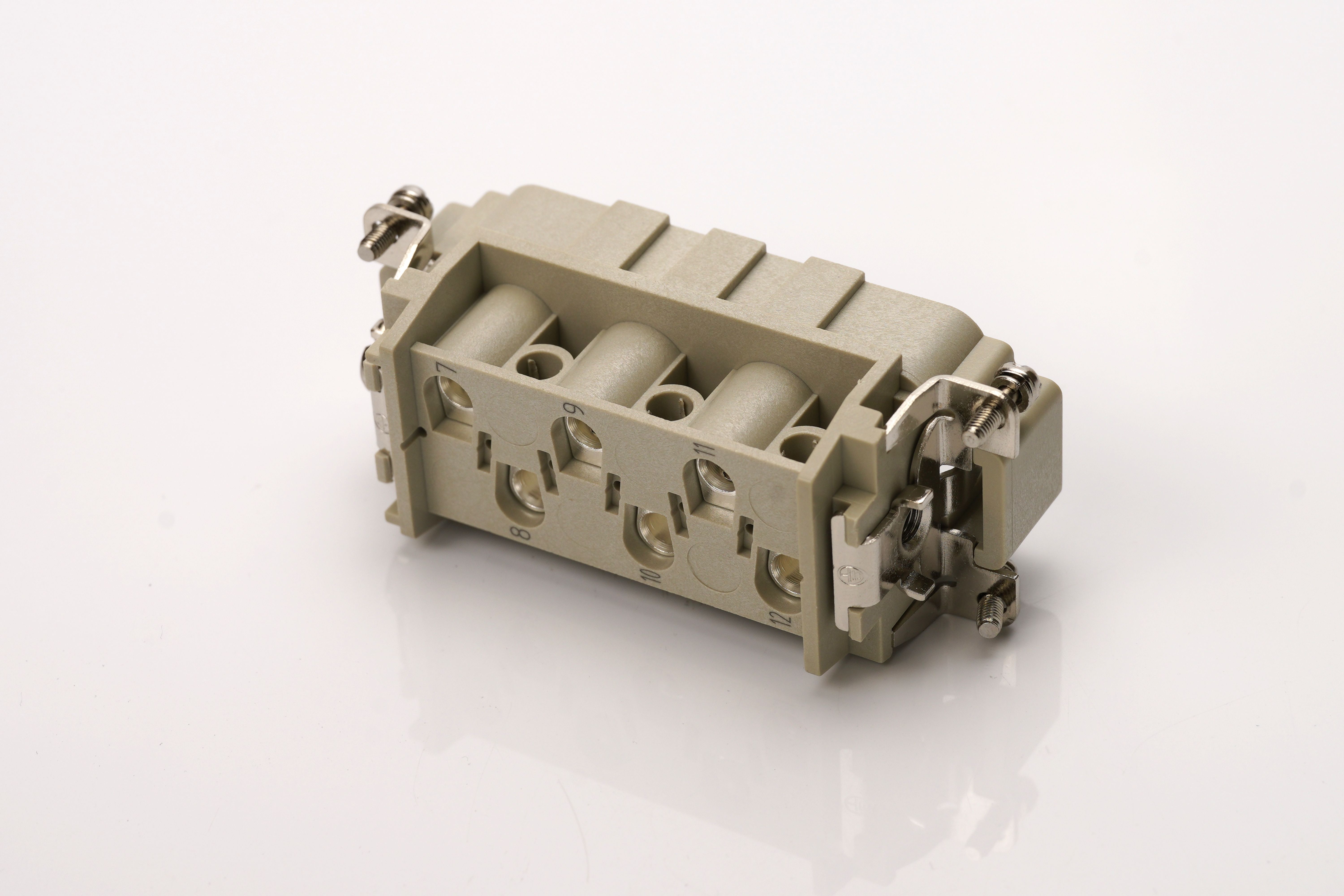 This is Heavy Duty Power Connector Insert 35A Male 6 + p Contacts manufactured by RS PRO. The manufacturer part number is 192-603. The product has a current rating of 35a. In addition, male is the available "Gender" of the product. It allows screw termination method. The product contains 6 + p contacts. It comes in connector insert configuration.