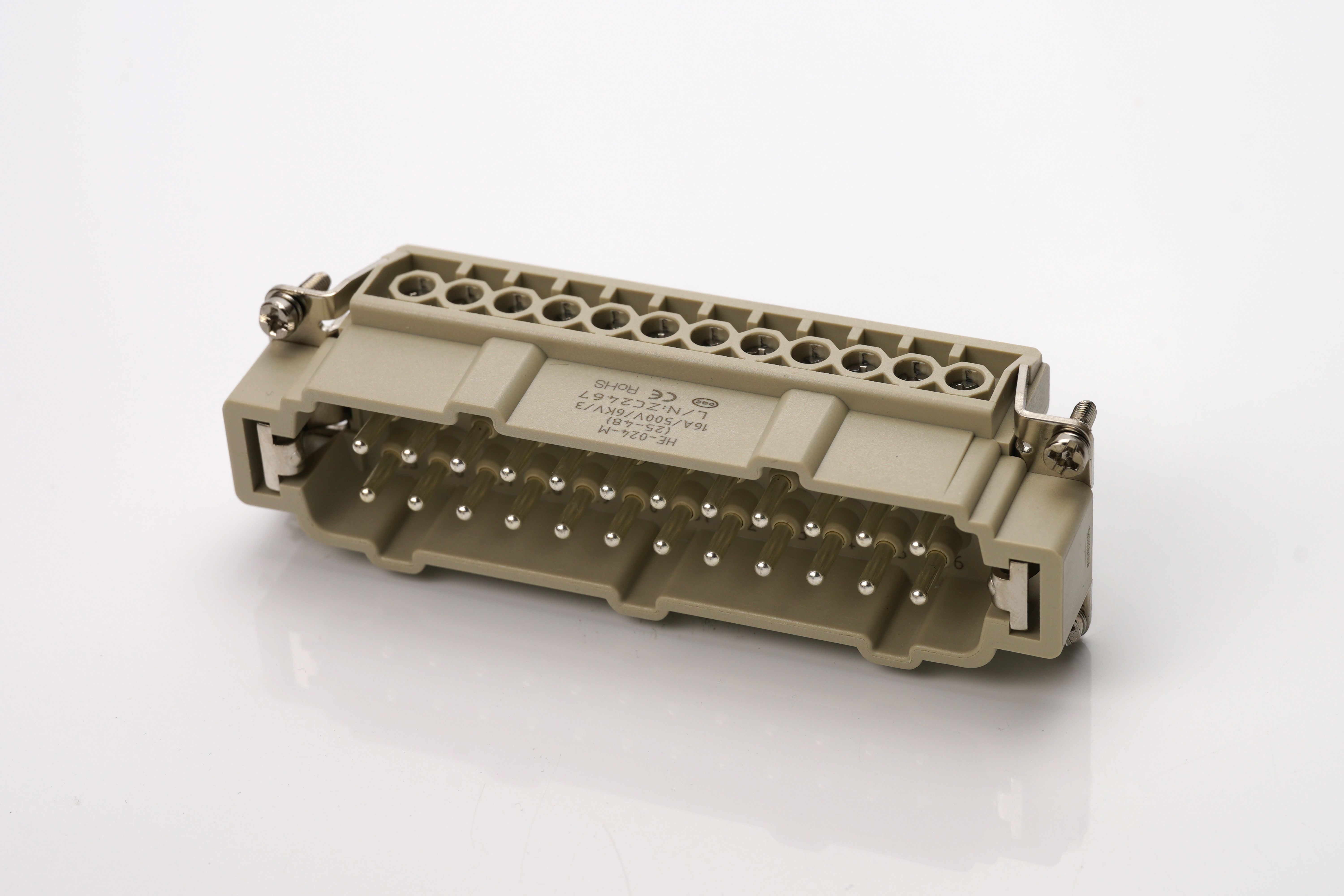 This is Male Insert 16A Male 24 Contacts manufactured by RS PRO. The manufacturer part number is 192-618. The product has a current rating of 16a. In addition, male is the available "Gender" of the product. It allows screw termination method. The product contains 24 contacts. It comes in male insert configuration.
